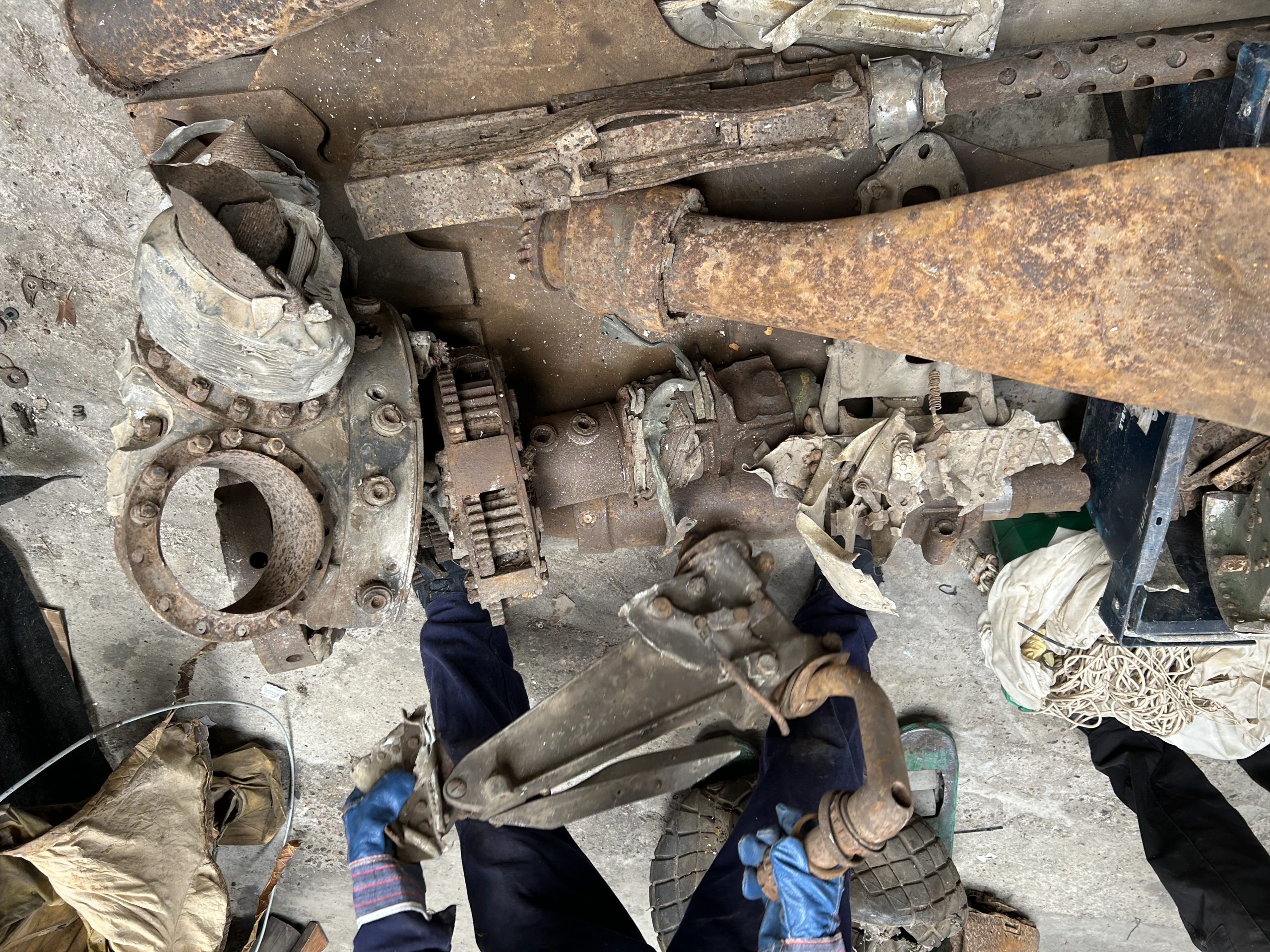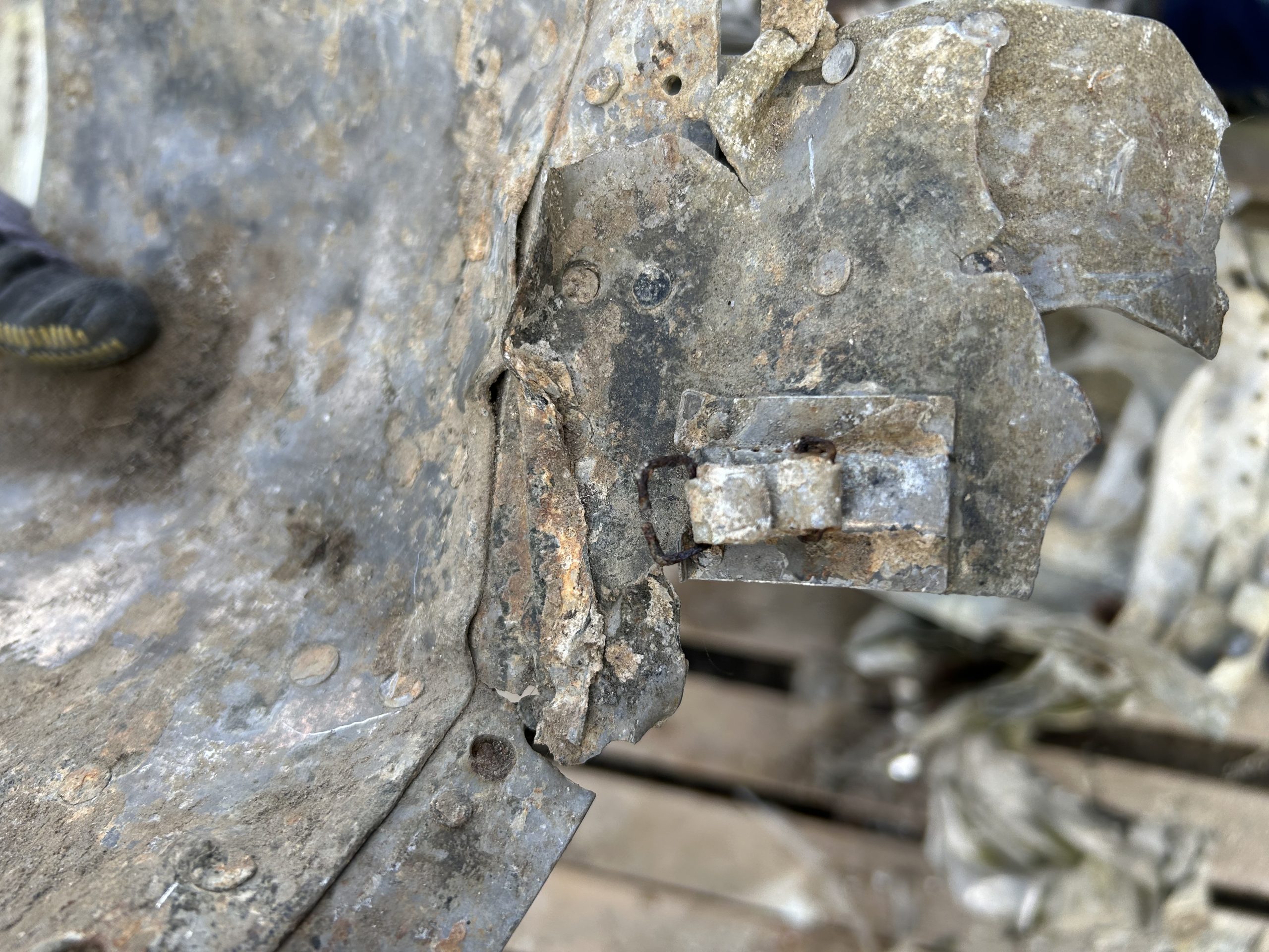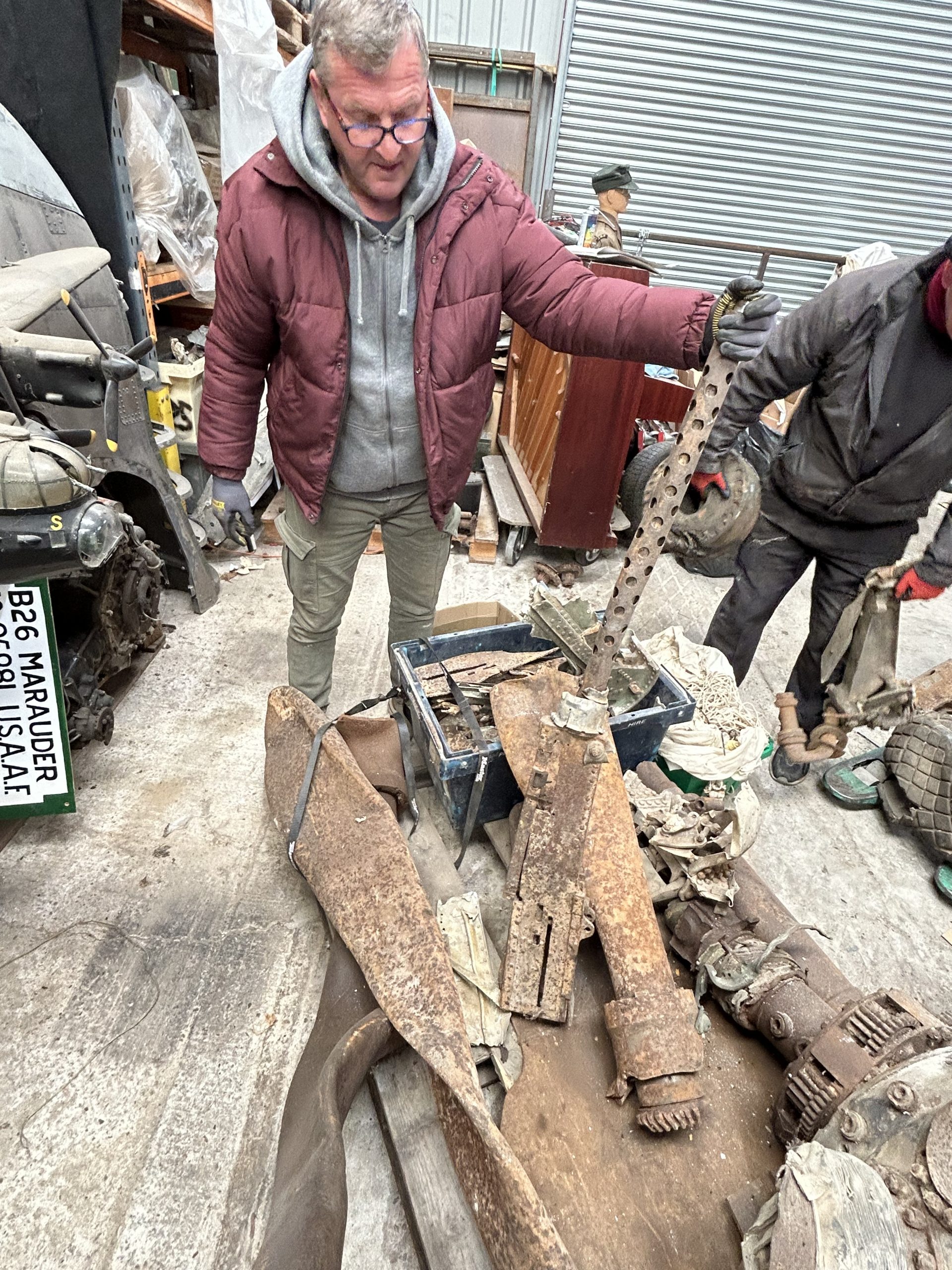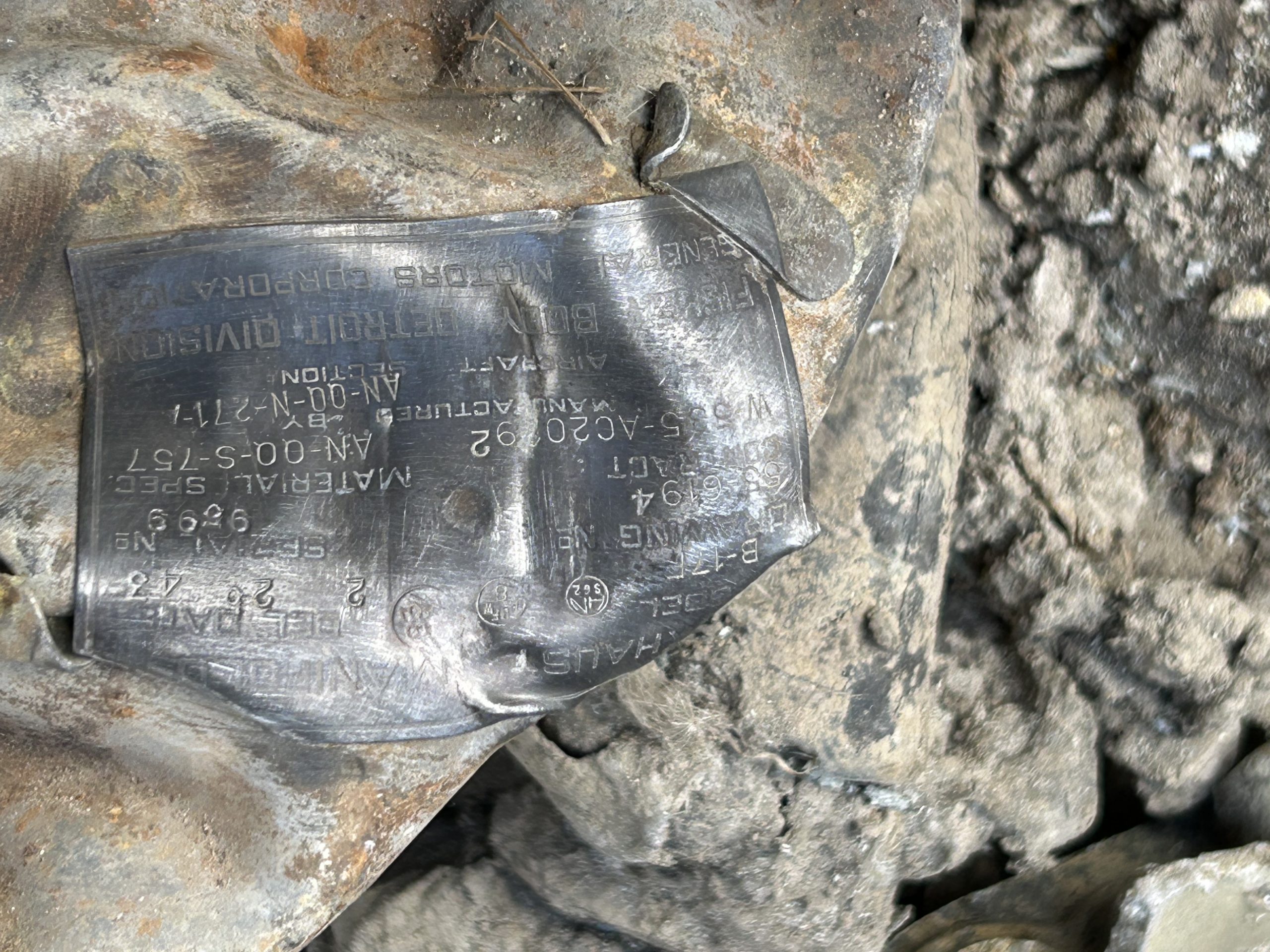 8 am we arrive on site. The digger we hired form the land owner is ready and waiting for us and now the excitement of what may be left of the this American fighter but from the tail wheel to the propeller along with the remains of eight .5 calibre Browning Machine Guns, undercarriage legs, engine, cockpit instruments and the sad reminder of the pilots Dwight Belt, his parachute, dingy and survival kit a 6″+4″ box containing chewing gum, milk tablets, and barley sugar lumps all still preserved in their wrappers, shame he did not get to use the chute! we would have loved to of met him. The most amazing find was Dwights cigarette lighter a present from his wife when he left the USA for England, and this was duly returned to her by us soon after.