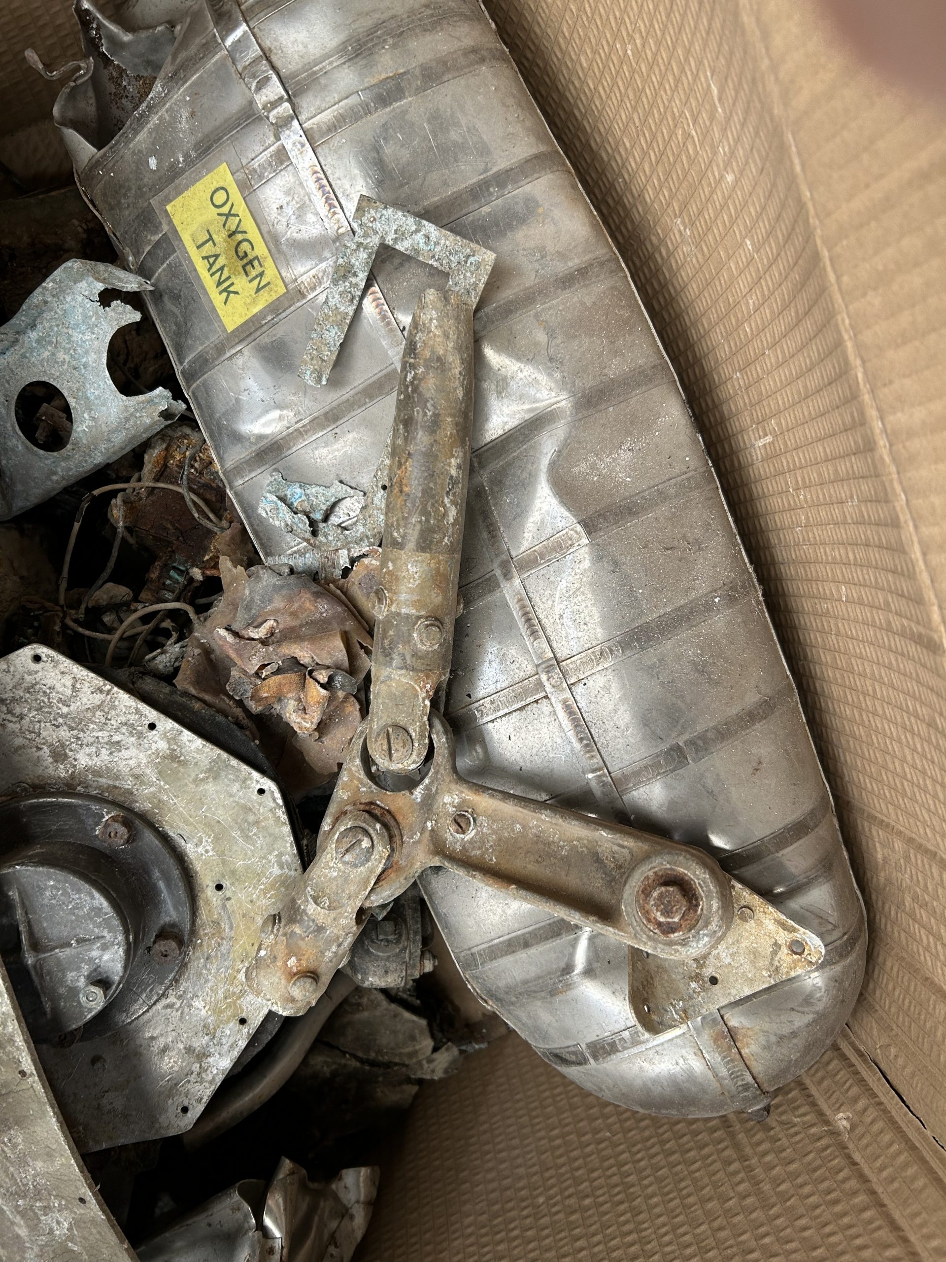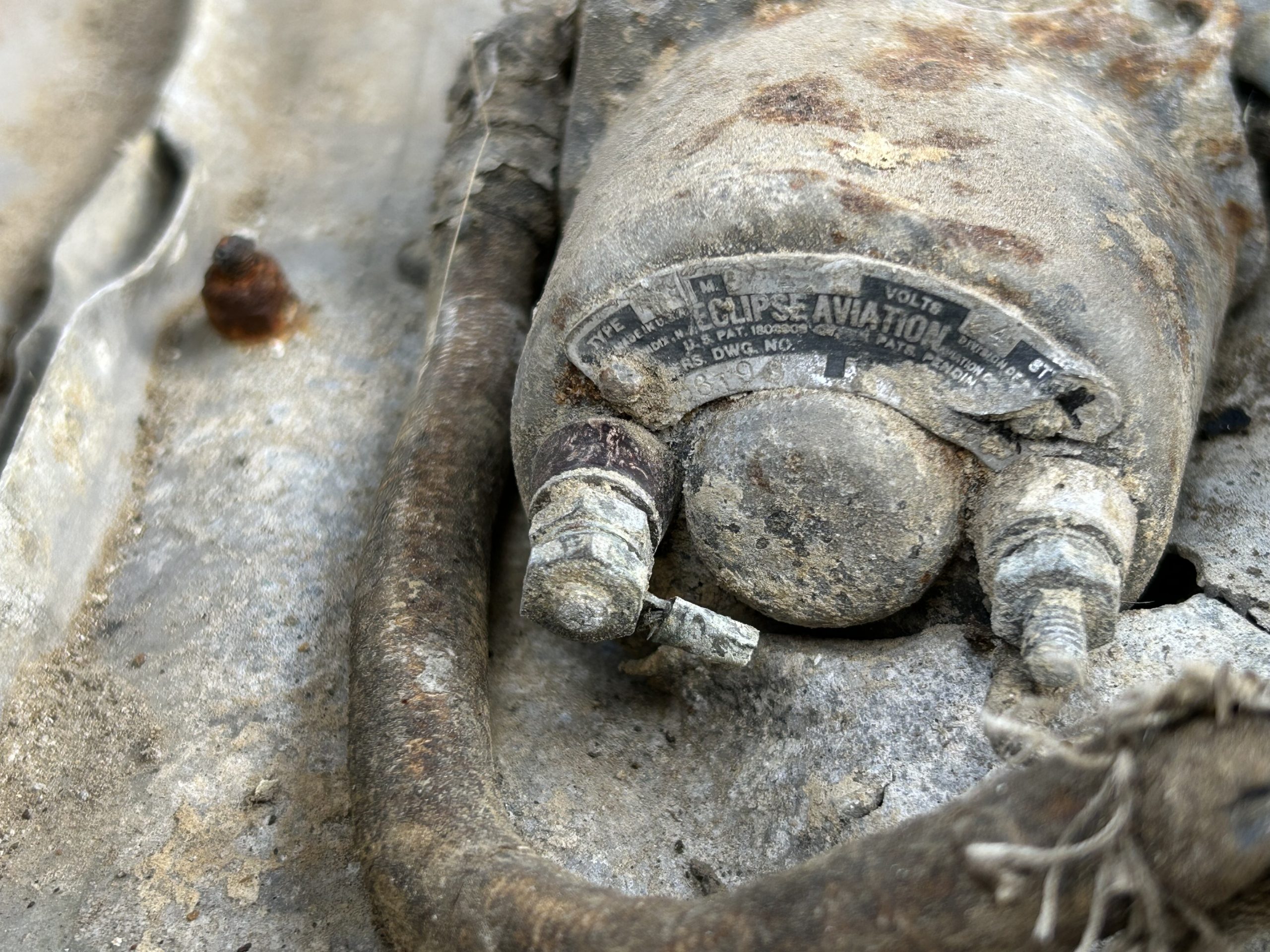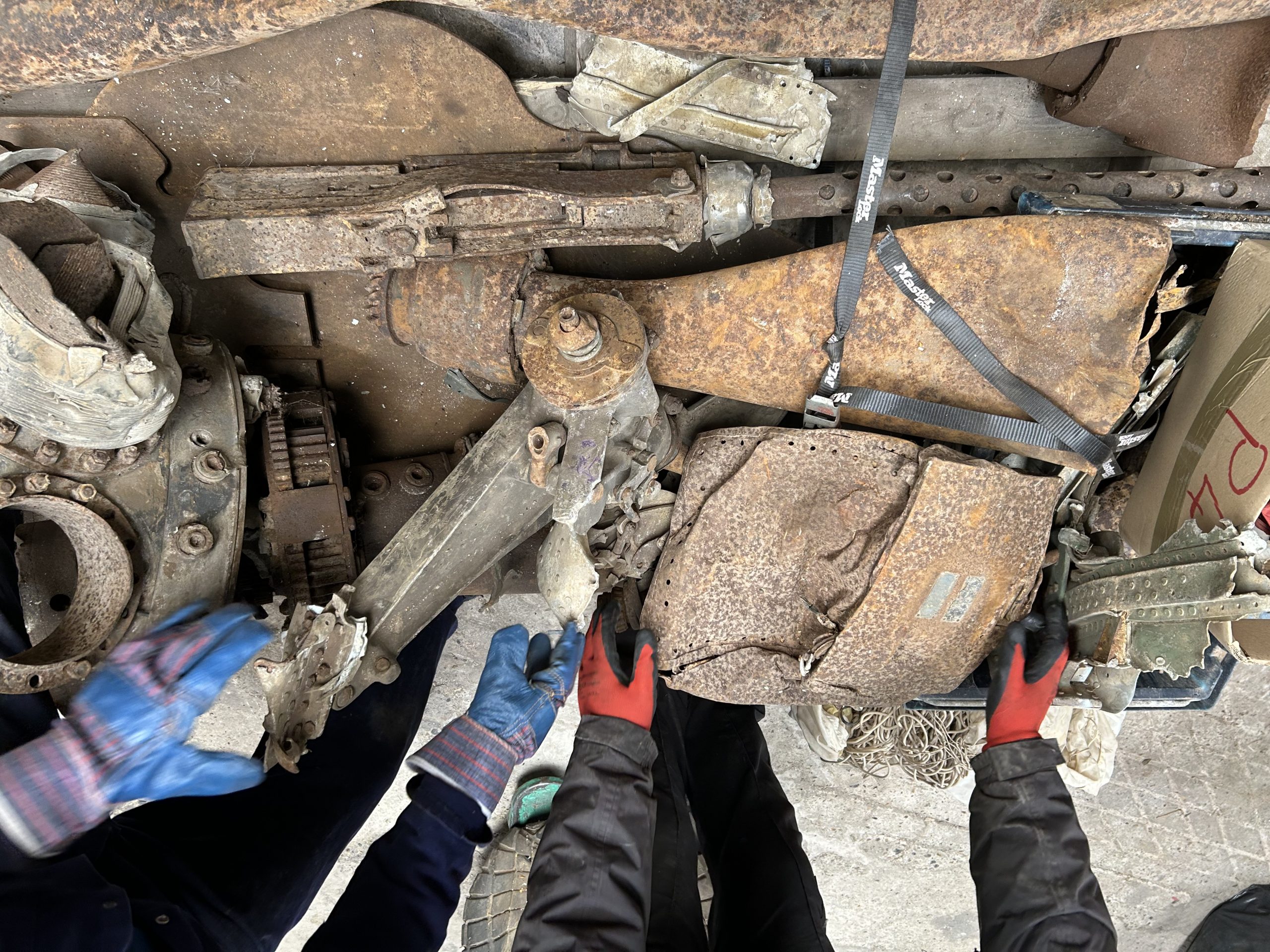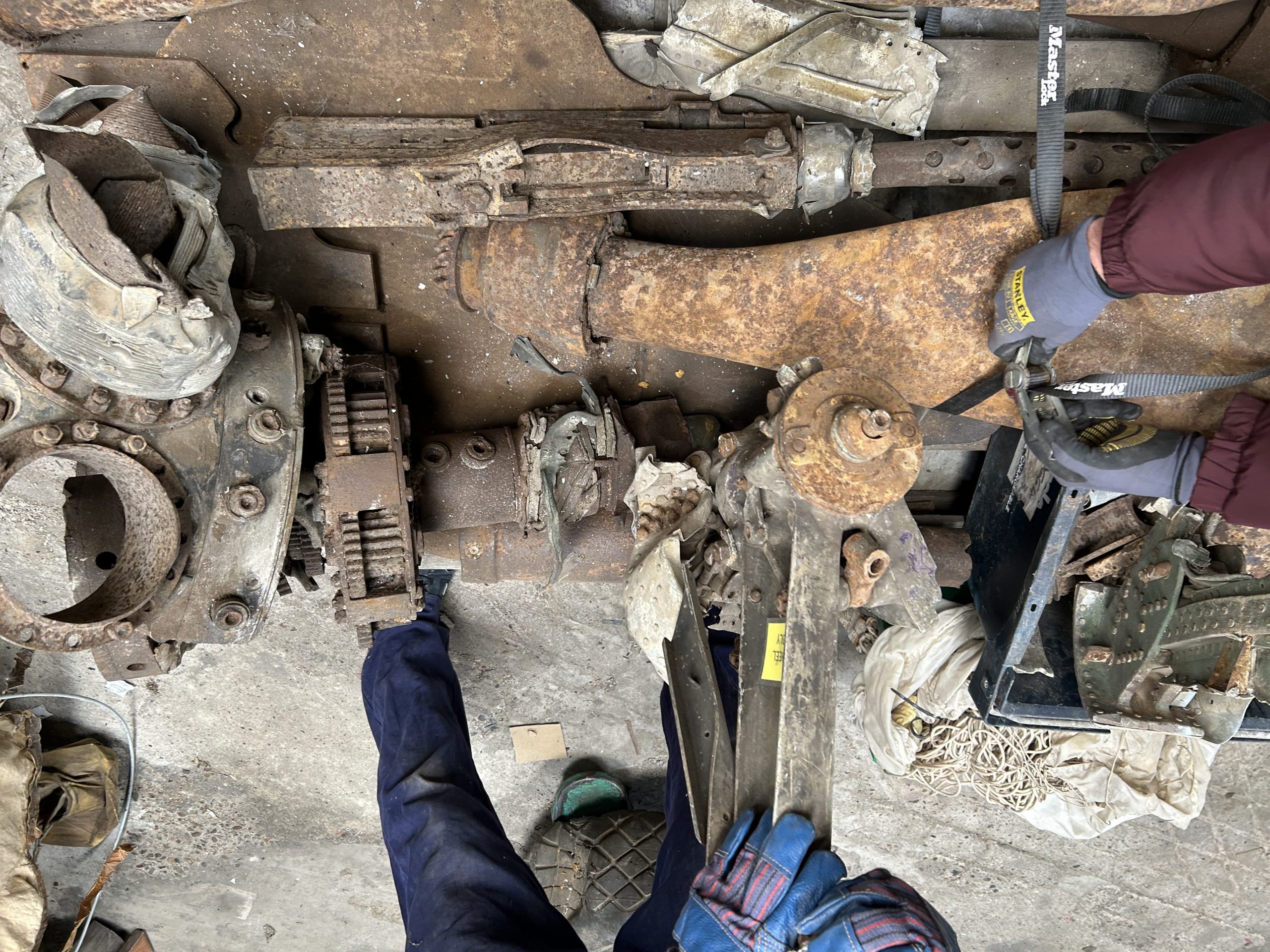 8 am we arrive on site. The digger we hired form the land owner is ready and waiting for us and now the excitement of what may be left of the this American fighter but from the tail wheel to the propeller along with the remains of eight .5 calibre Browning Machine Guns, undercarriage legs, engine, cockpit instruments and the sad reminder of the pilots Dwight Belt, his parachute, dingy and survival kit a 6″+4″ box containing chewing gum, milk tablets, and barley sugar lumps all still preserved in their wrappers, shame he did not get to use the chute! we would have loved to of met him. The most amazing find was Dwights cigarette lighter a present from his wife when he left the USA for England, and this was duly returned to her by us soon after.
