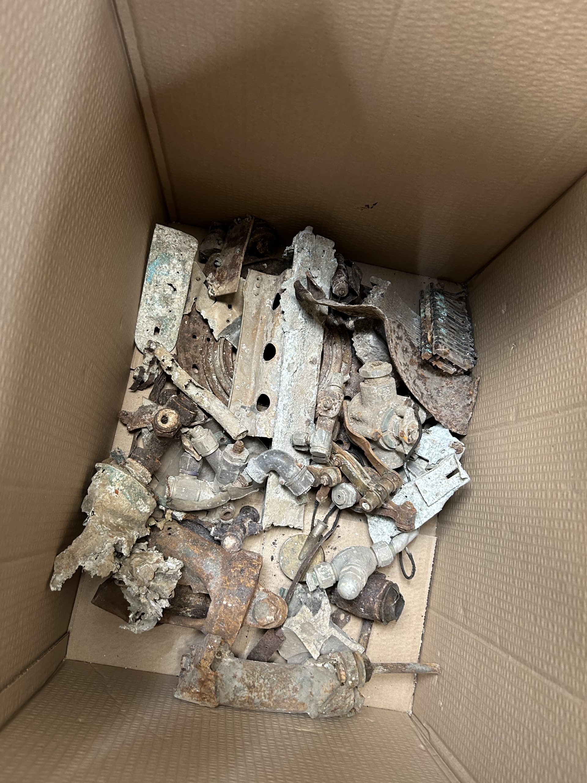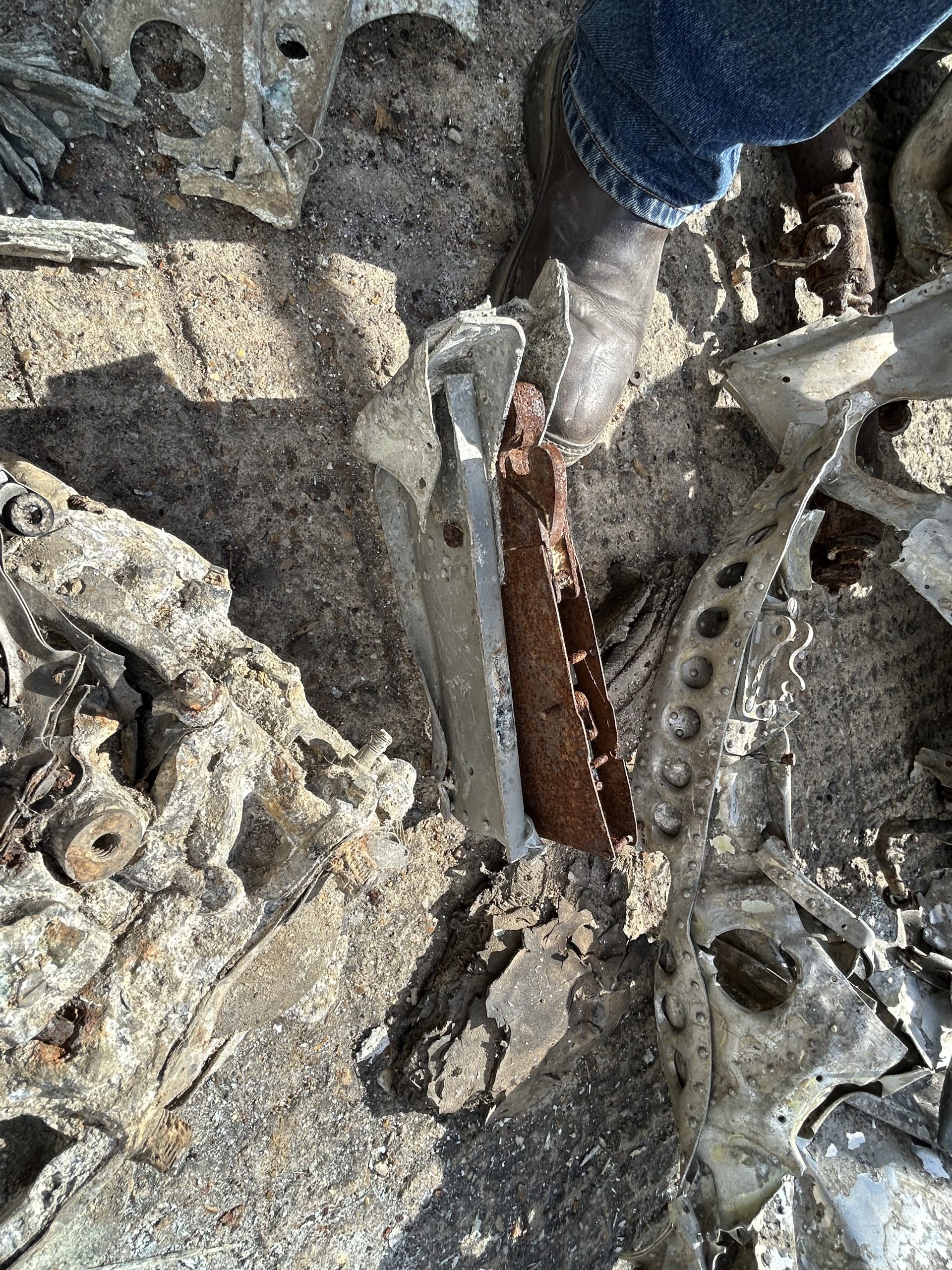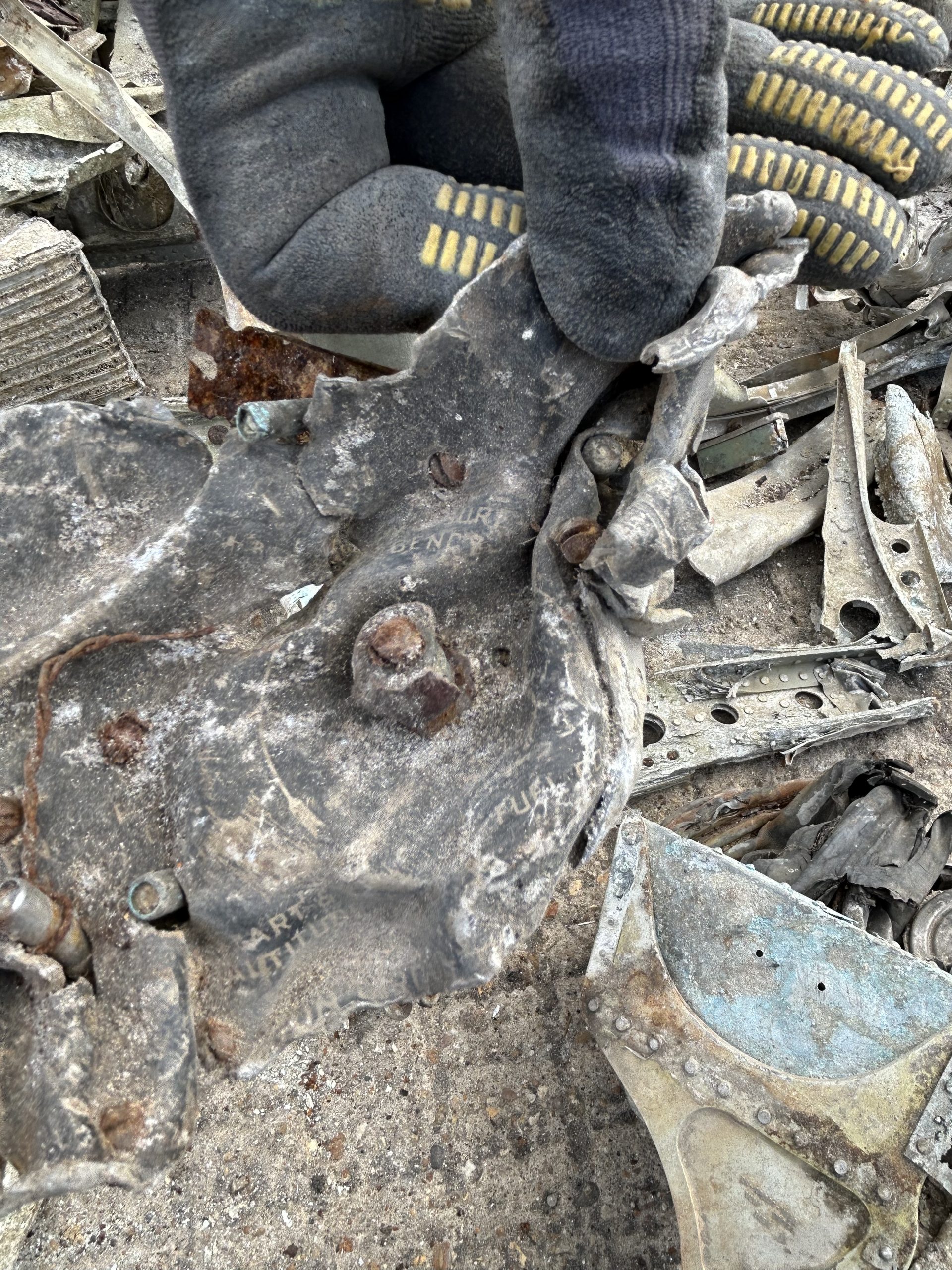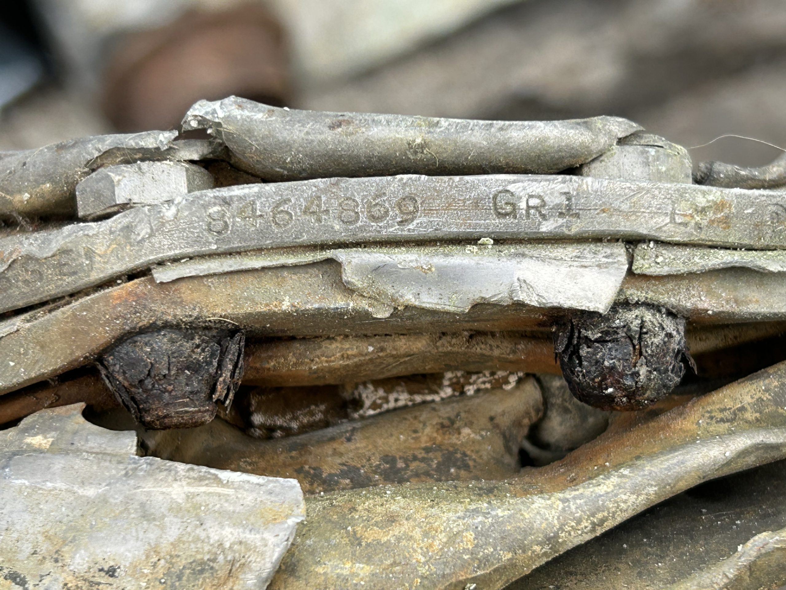 8 am we arrive on site. The digger we hired form the land owner is ready and waiting for us and now the excitement of what may be left of the this American fighter but from the tail wheel to the propeller along with the remains of eight .5 calibre Browning Machine Guns, undercarriage legs, engine, cockpit instruments and the sad reminder of the pilots Dwight Belt, his parachute, dingy and survival kit a 6″+4″ box containing chewing gum, milk tablets, and barley sugar lumps all still preserved in their wrappers, shame he did not get to use the chute! we would have loved to of met him. The most amazing find was Dwights cigarette lighter a present from his wife when he left the USA for England, and this was duly returned to her by us soon after.