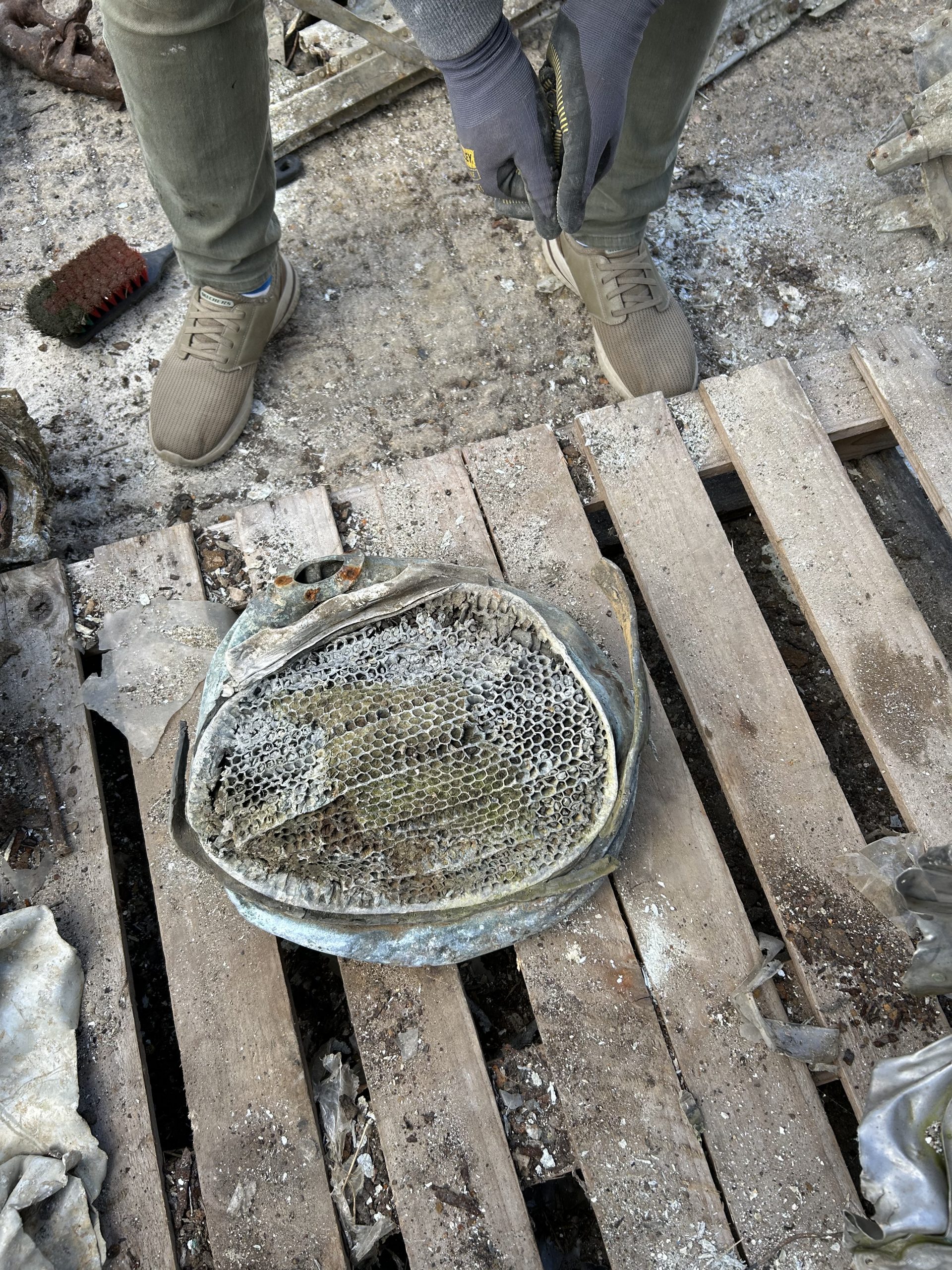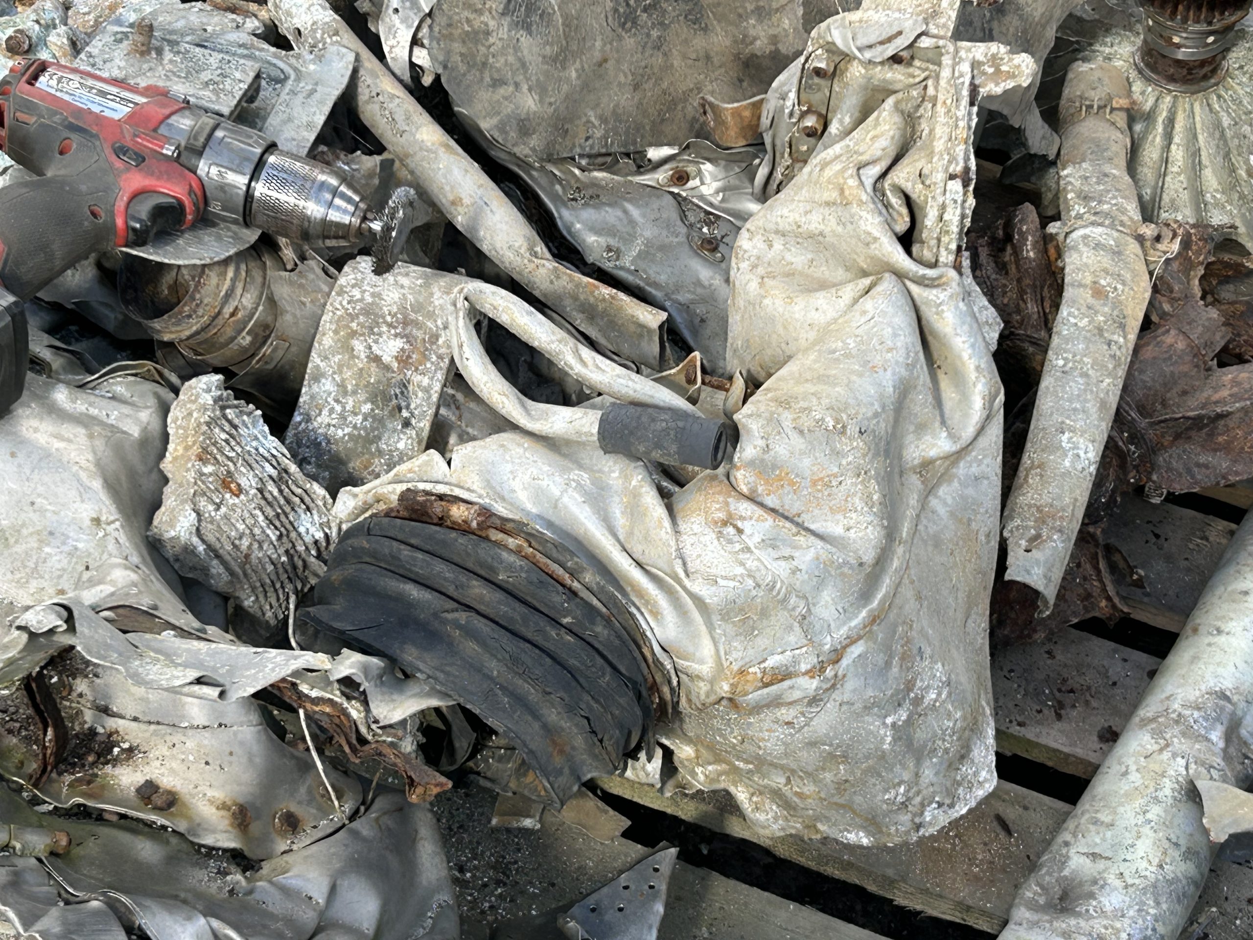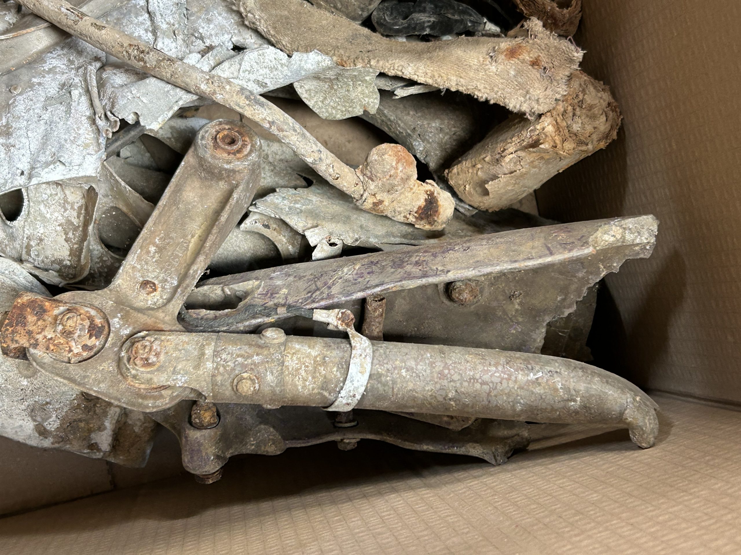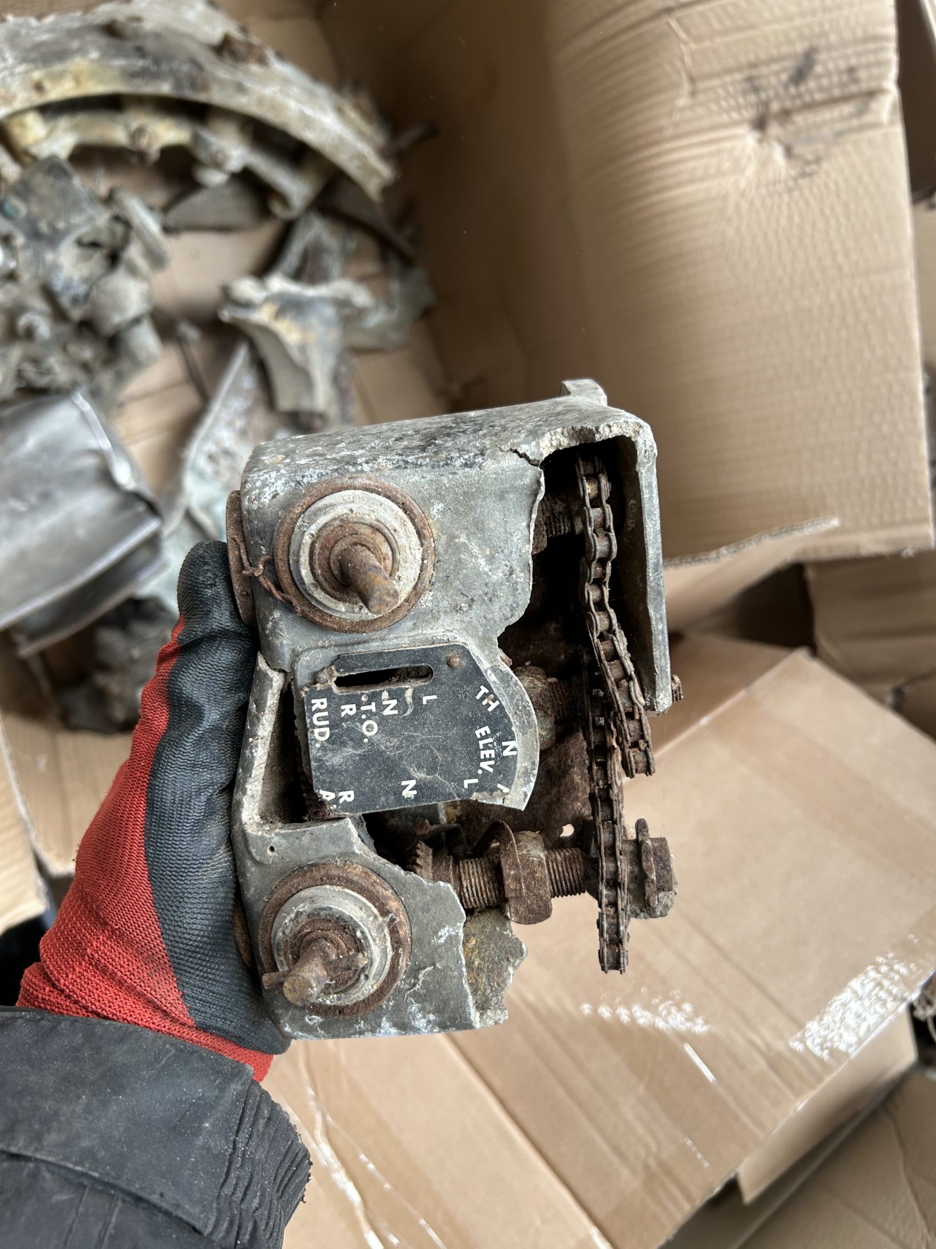 8 am we arrive on site. The digger we hired form the land owner is ready and waiting for us and now the excitement of what may be left of the this American fighter but from the tail wheel to the propeller along with the remains of eight .5 calibre Browning Machine Guns, undercarriage legs, engine, cockpit instruments and the sad reminder of the pilots Dwight Belt, his parachute, dingy and survival kit a 6″+4″ box containing chewing gum, milk tablets, and barley sugar lumps all still preserved in their wrappers, shame he did not get to use the chute! we would have loved to of met him. The most amazing find was Dwights cigarette lighter a present from his wife when he left the USA for England, and this was duly returned to her by us soon after.