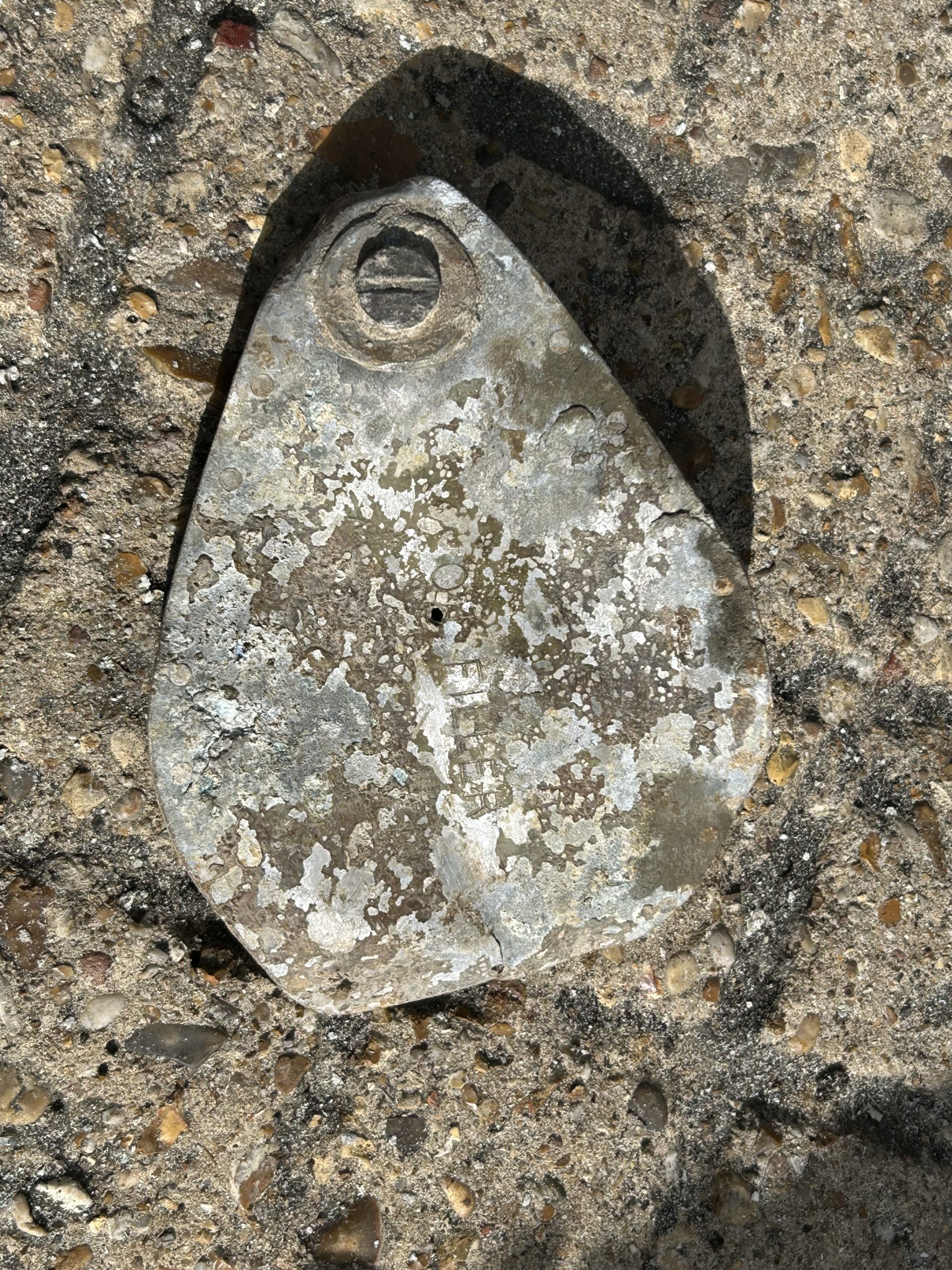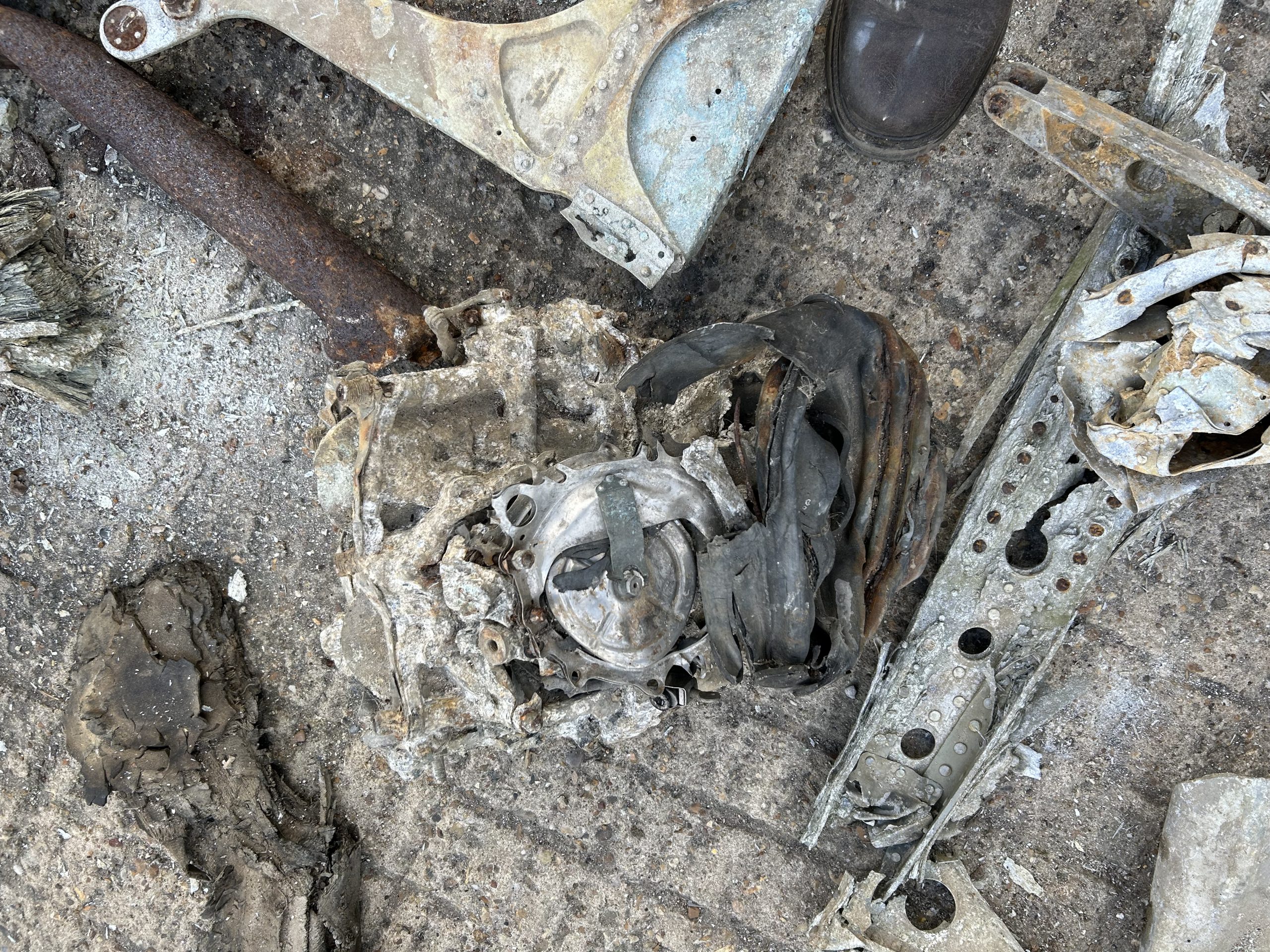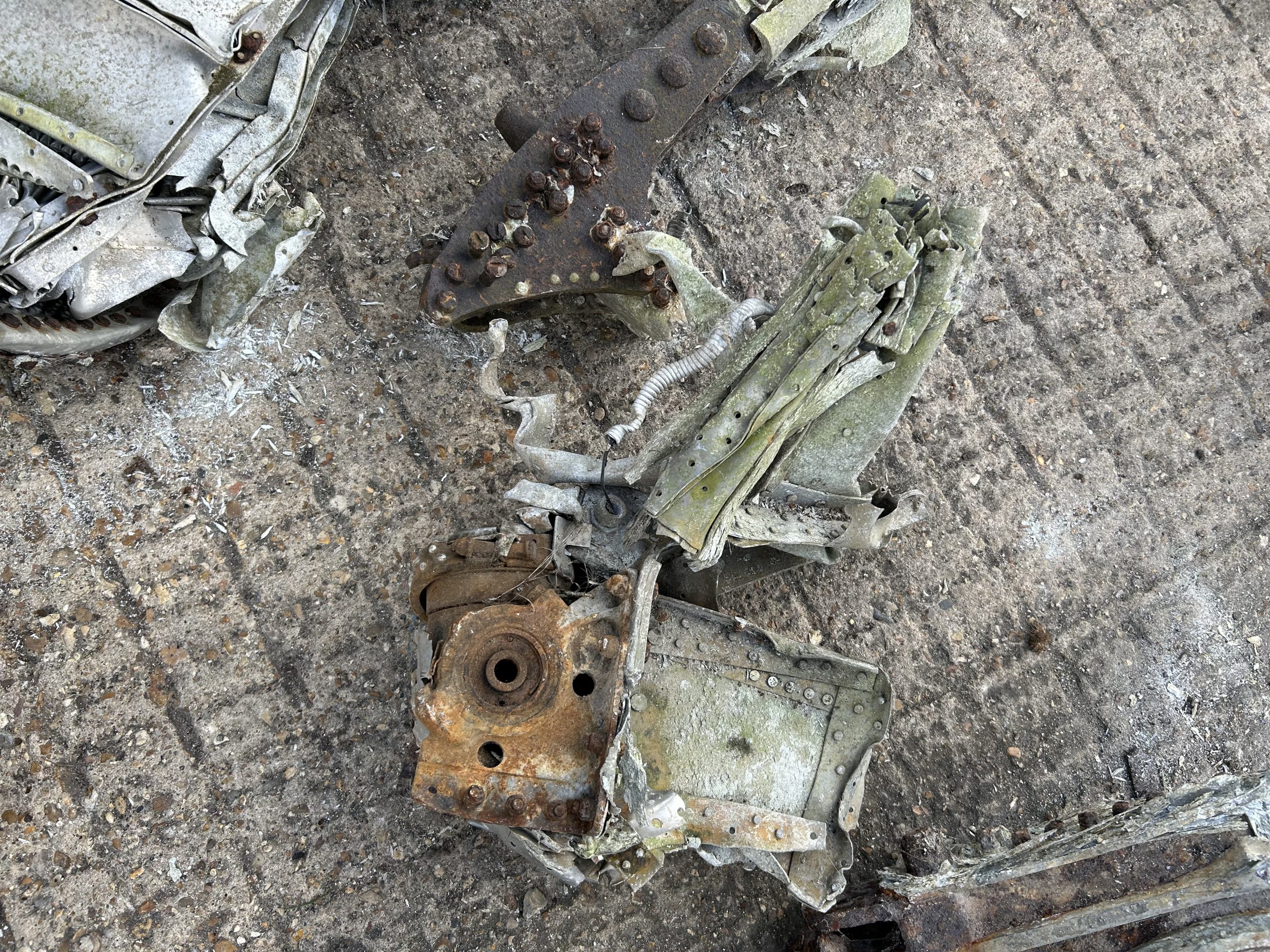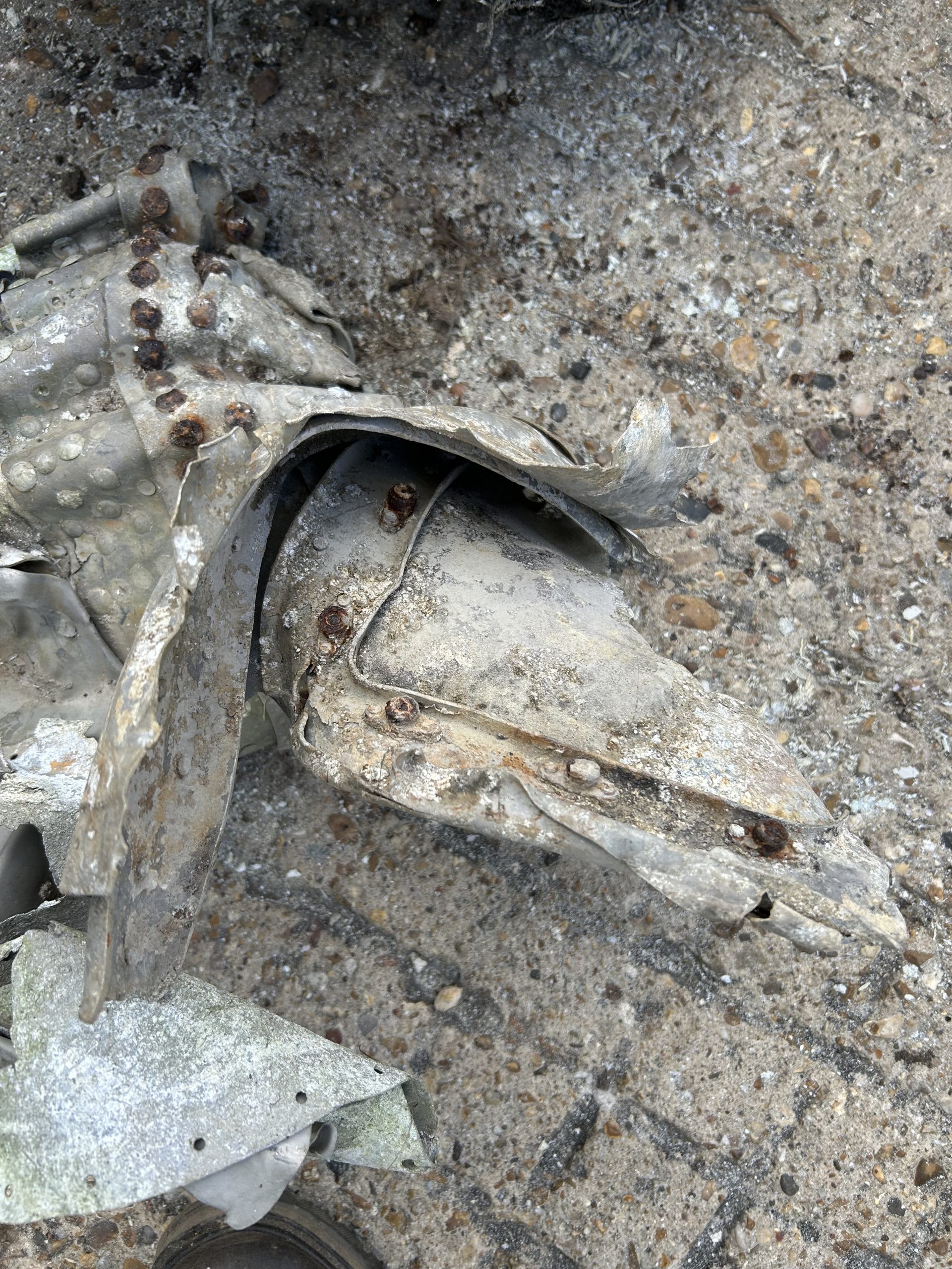 The land was owned by Sir Peter Butler, I called at the farm and he was quite happy to let me on the field and asked if I would let him know what I find. Back at the field I parked my car in about 30 yards from the field entrance in Church Road, a very large field stood before me after three hours of metal detector and field walking nothing came to light so time to pack up and go home try again in the very near future but as I pulled out of the field there was a gentleman on his bicycle approaching from the direction of Halstead I stopped him and asked if he knew about the aeroplane that crashed in WWII he said “oh yes I was at Sunday school and we thought it was going to crash right on us”. He then took me into the field where he walked about 25 – 30 yards in and said “here, its right here” metal detector on, and wow dead centre of the place I had packed my car, thank you Mr Trailor, crash site found.