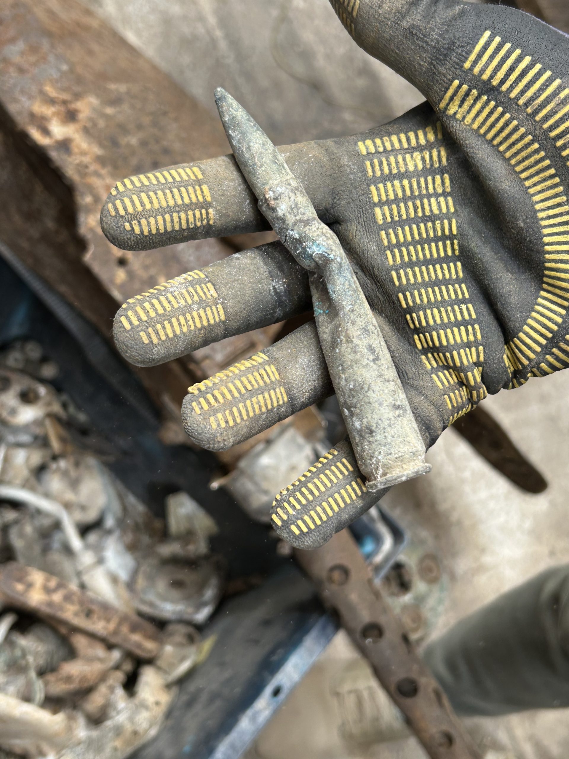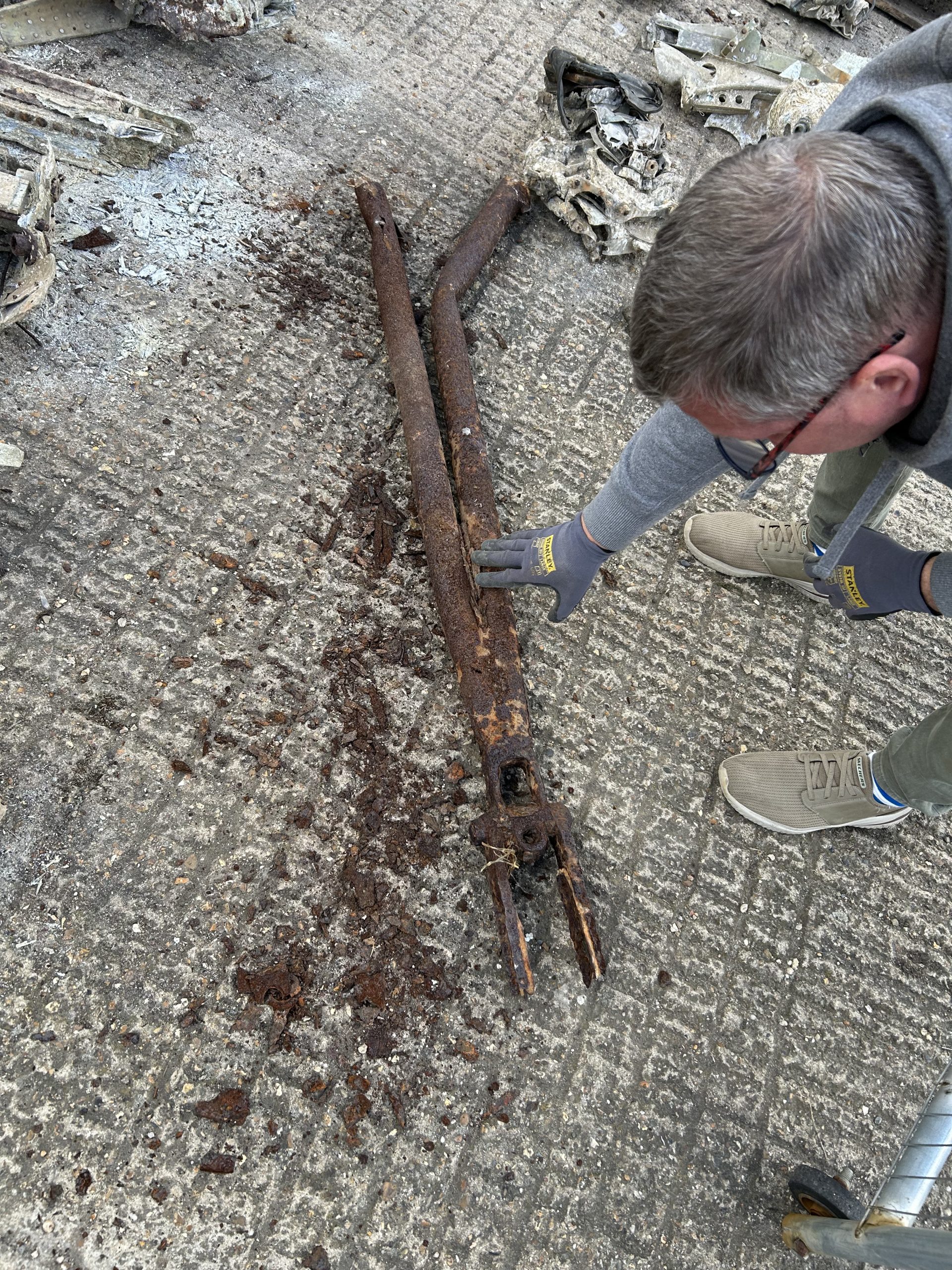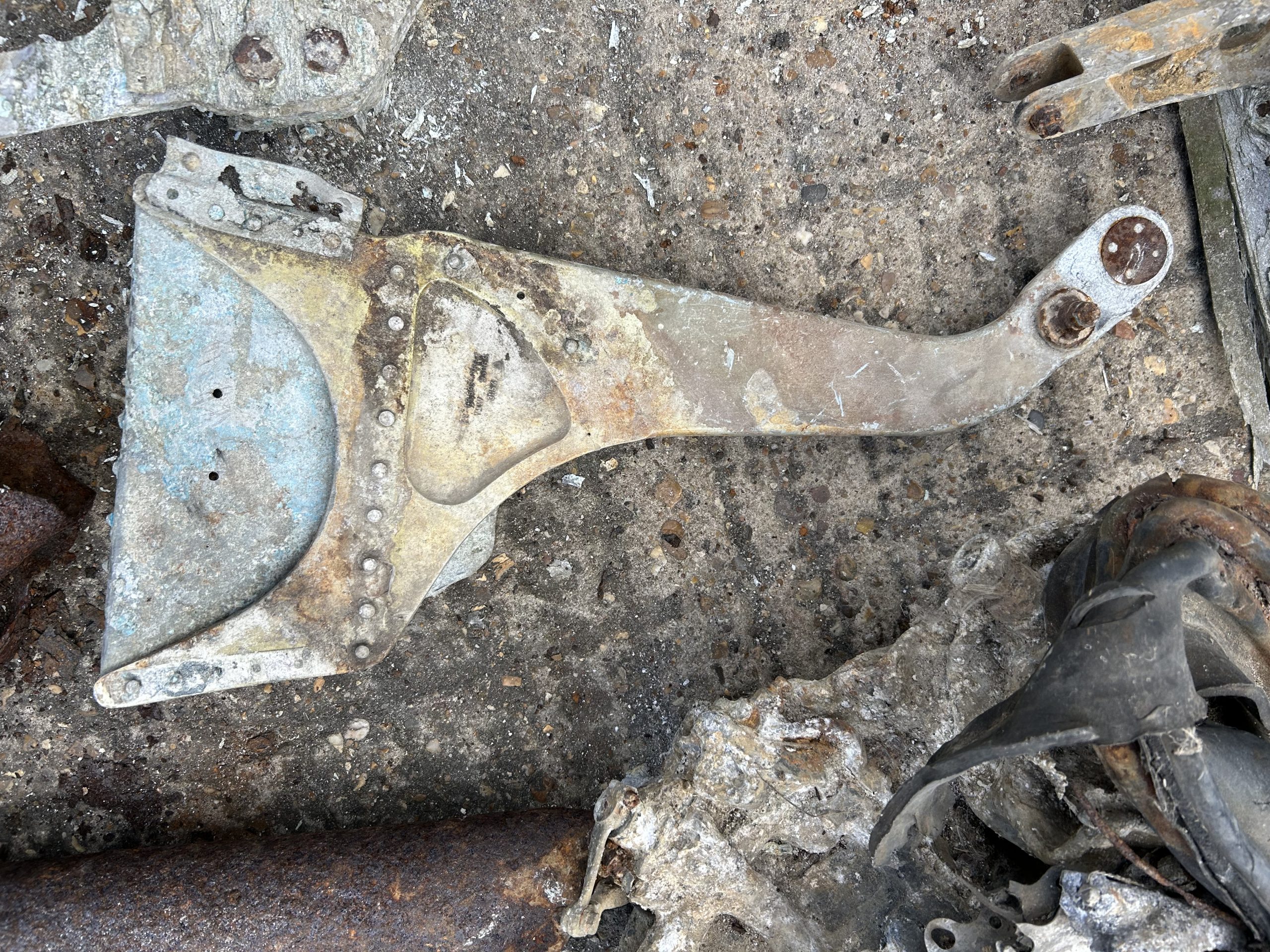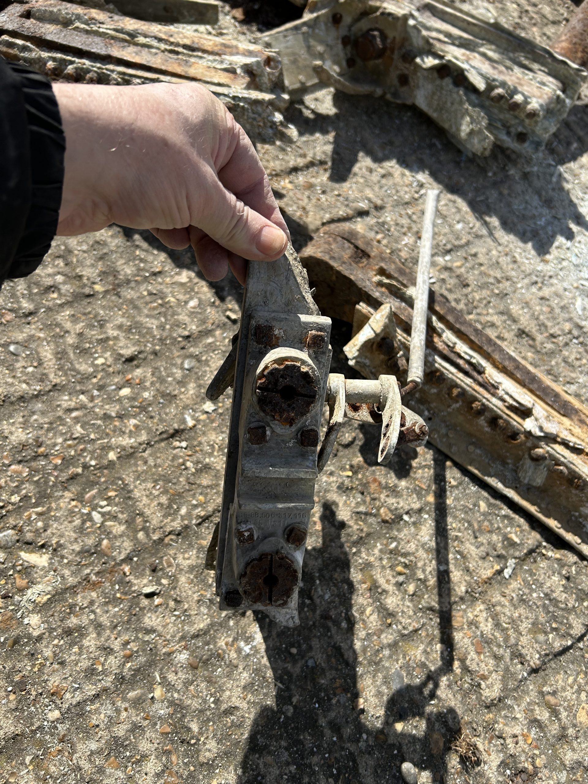 The land was owned by Sir Peter Butler, I called at the farm and he was quite happy to let me on the field and asked if I would let him know what I find. Back at the field I parked my car in about 30 yards from the field entrance in Church Road, a very large field stood before me after three hours of metal detector and field walking nothing came to light so time to pack up and go home try again in the very near future but as I pulled out of the field there was a gentleman on his bicycle approaching from the direction of Halstead I stopped him and asked if he knew about the aeroplane that crashed in WWII he said “oh yes I was at Sunday school and we thought it was going to crash right on us”. He then took me into the field where he walked about 25 – 30 yards in and said “here, its right here” metal detector on, and wow dead centre of the place I had packed my car, thank you Mr Trailor, crash site found.