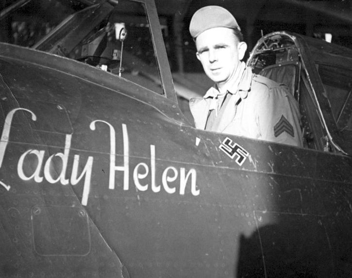 Named as by pilot 2nd Lt Dwight G Belt after his wife as “Lady Helen”; Crashed near Greenstead Green, Halstead, Essex October 1, 1944 after a mid air collision with a B-17G of the 96th Bomb Group.