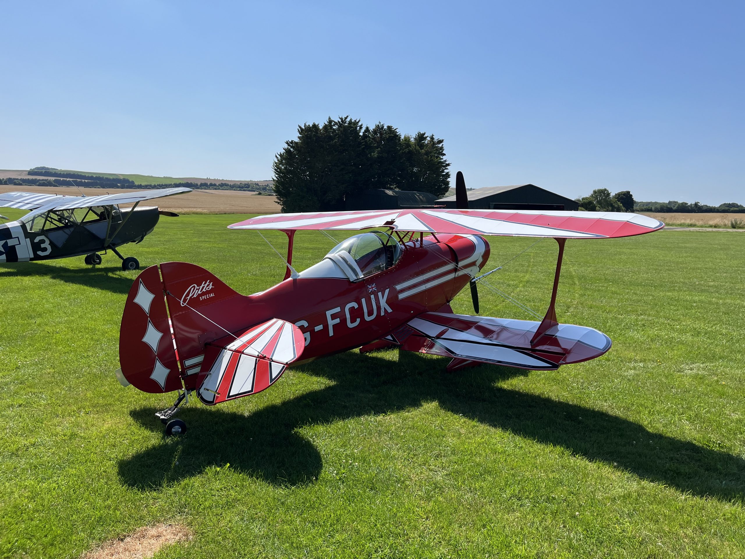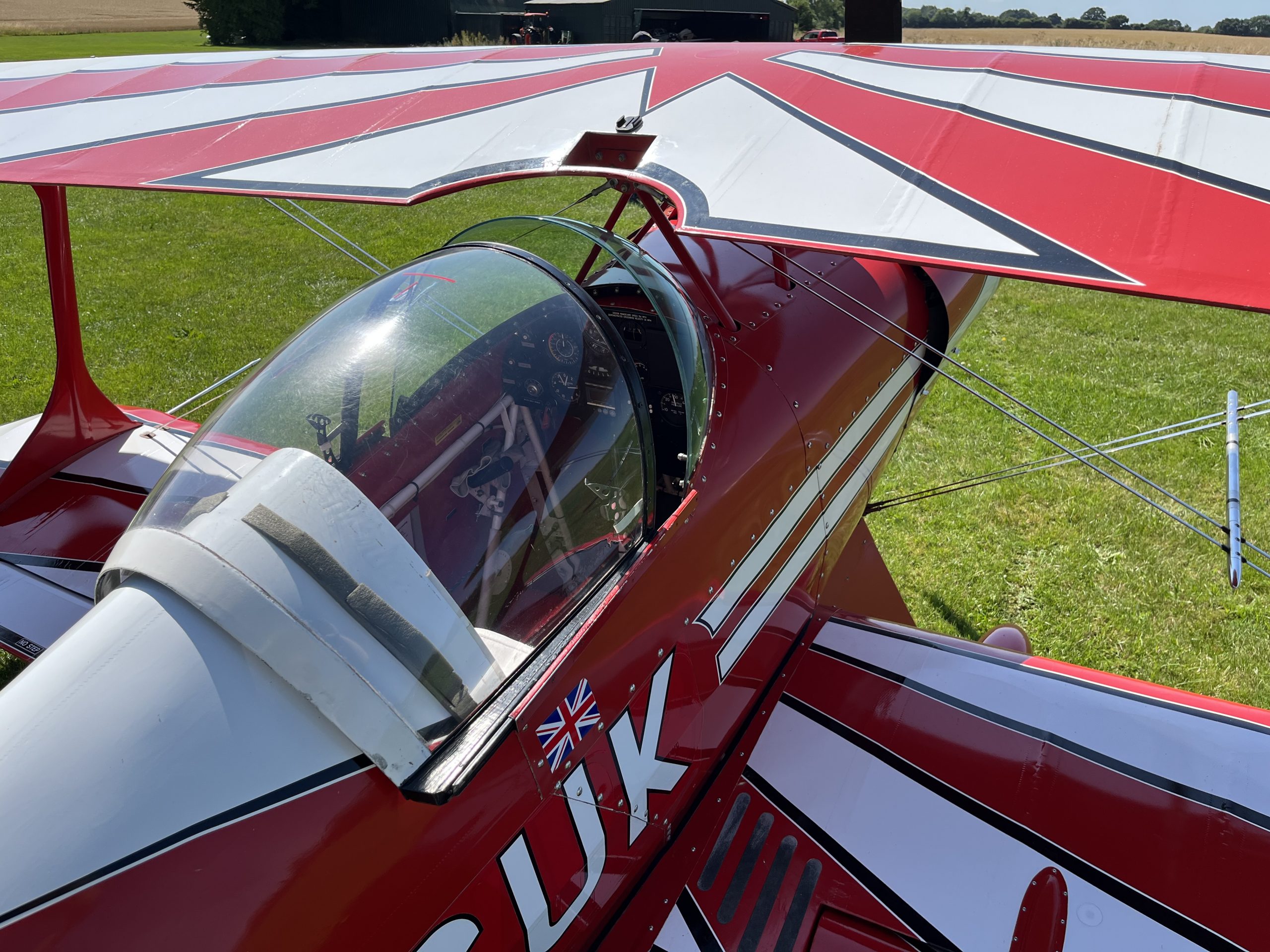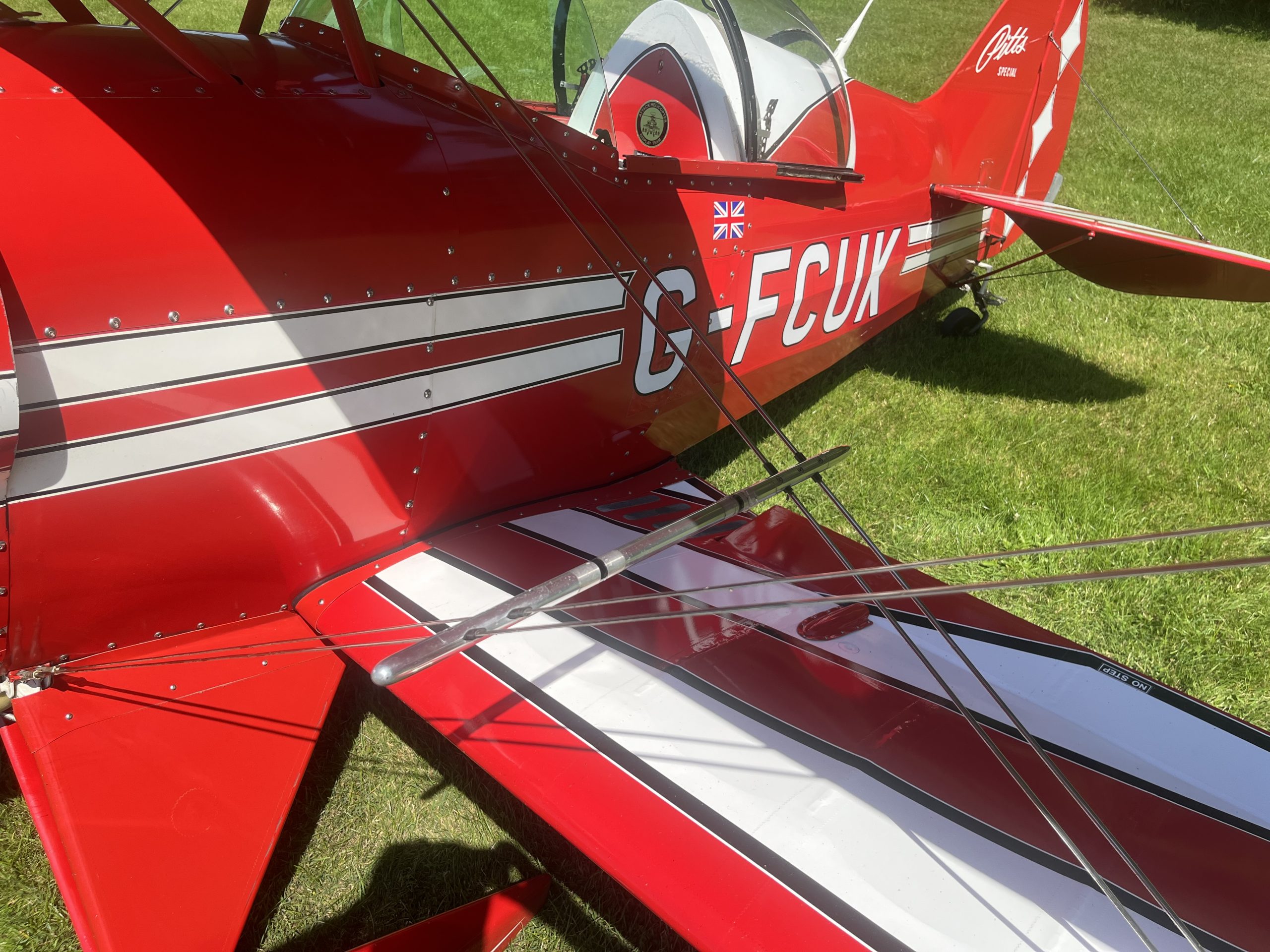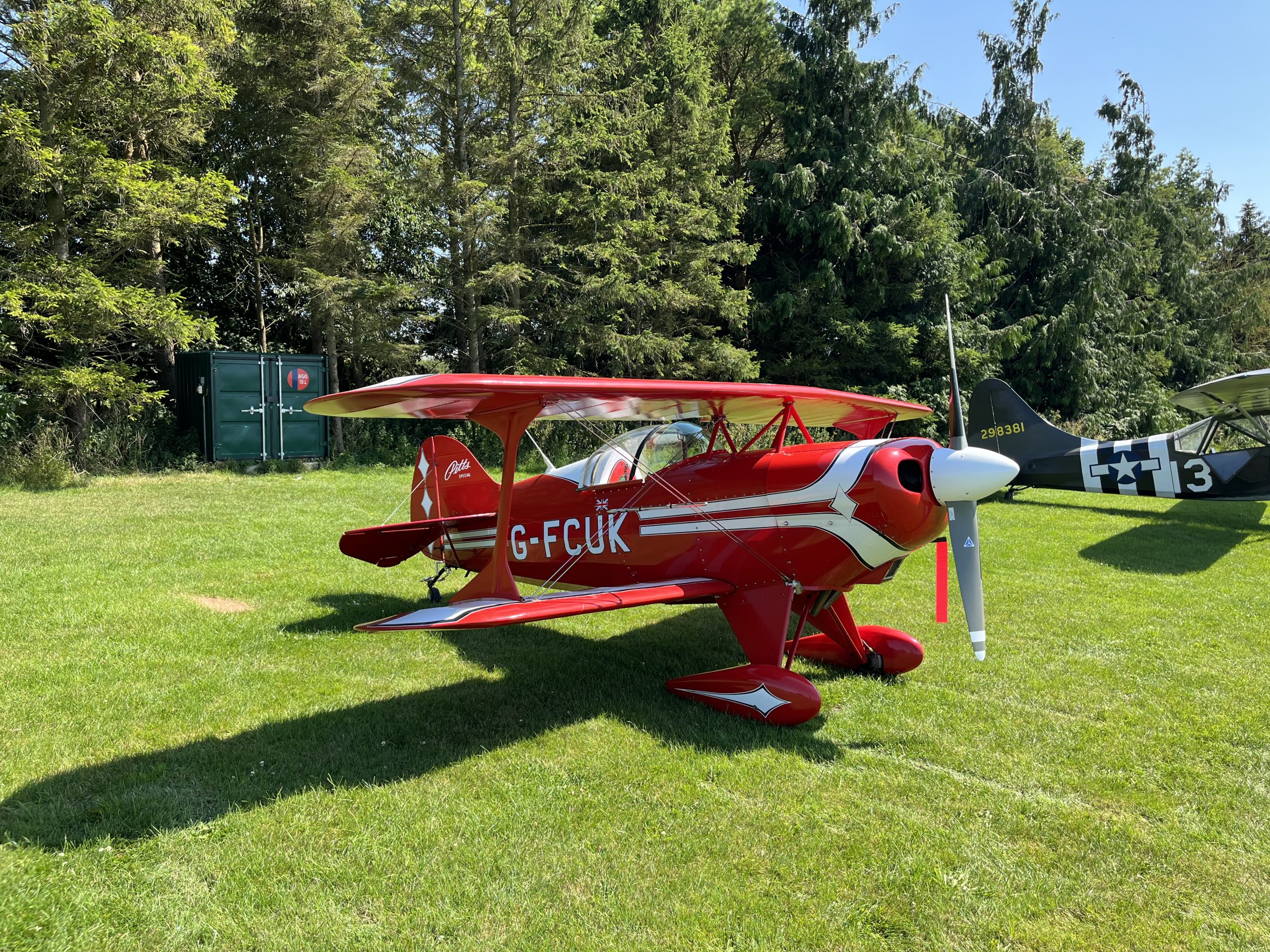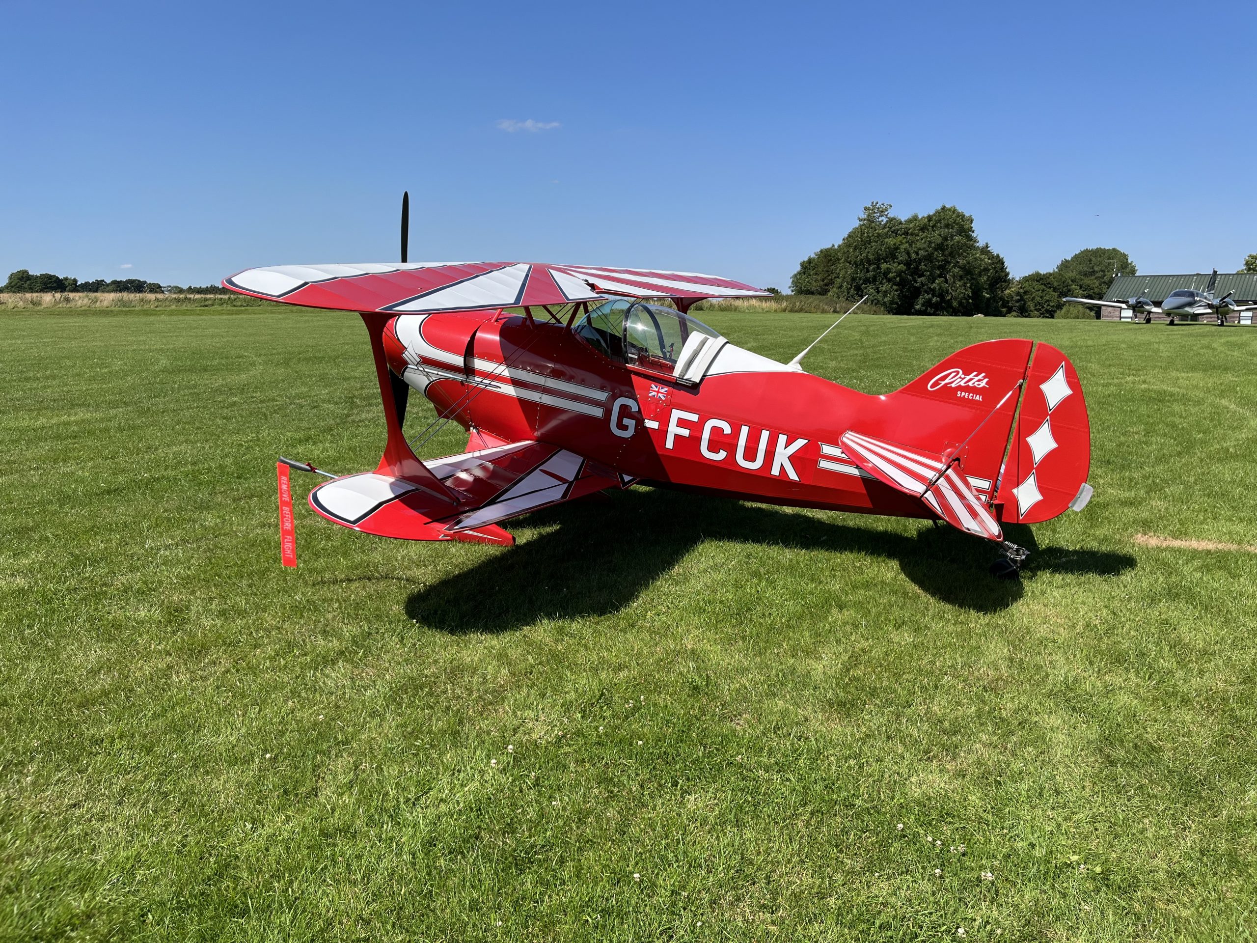 G-FCUK is a classic aerobatic biplane originally built in 1974. It’s a famous design by Curtis Pitts, known for its incredible performance.