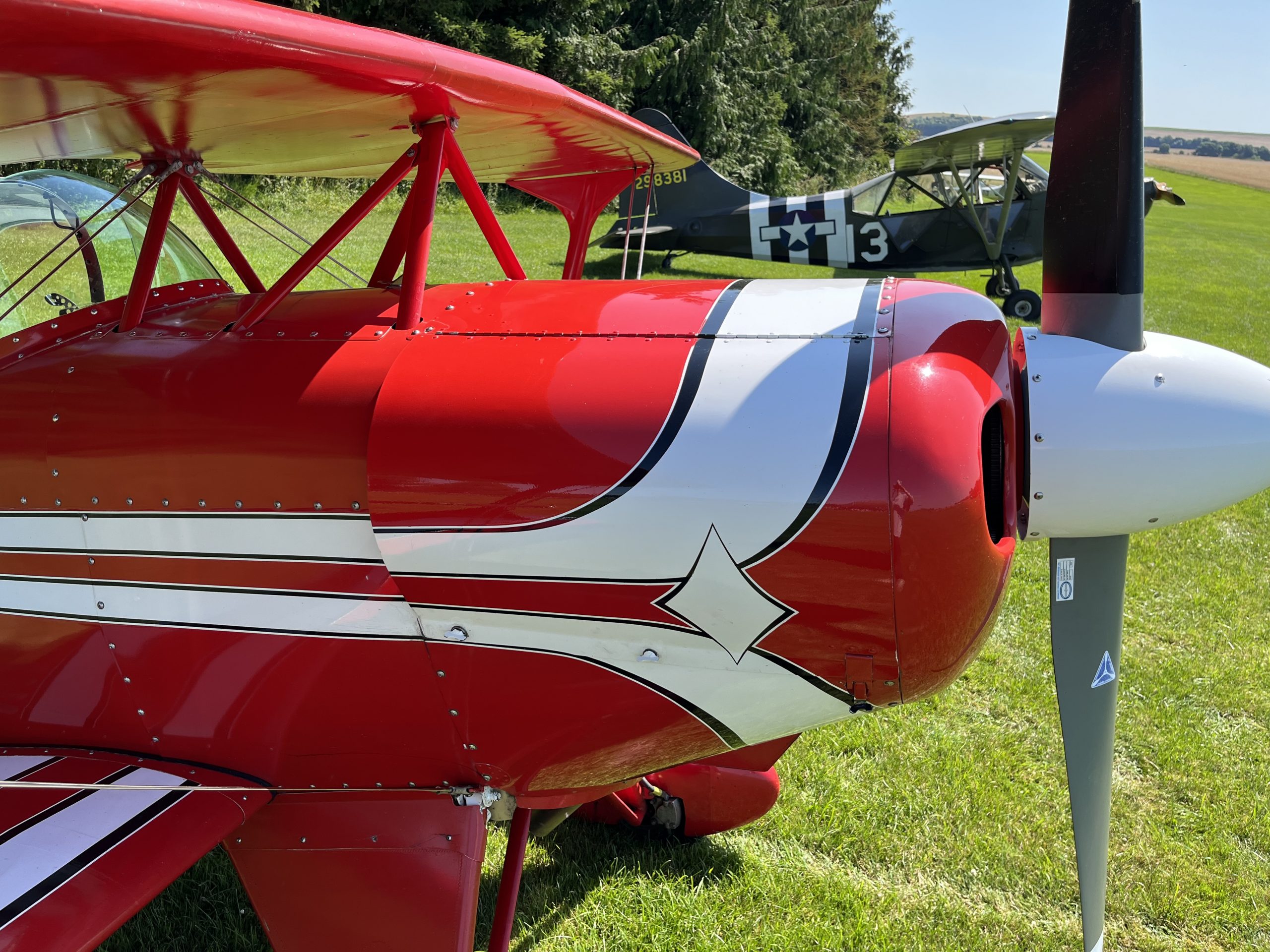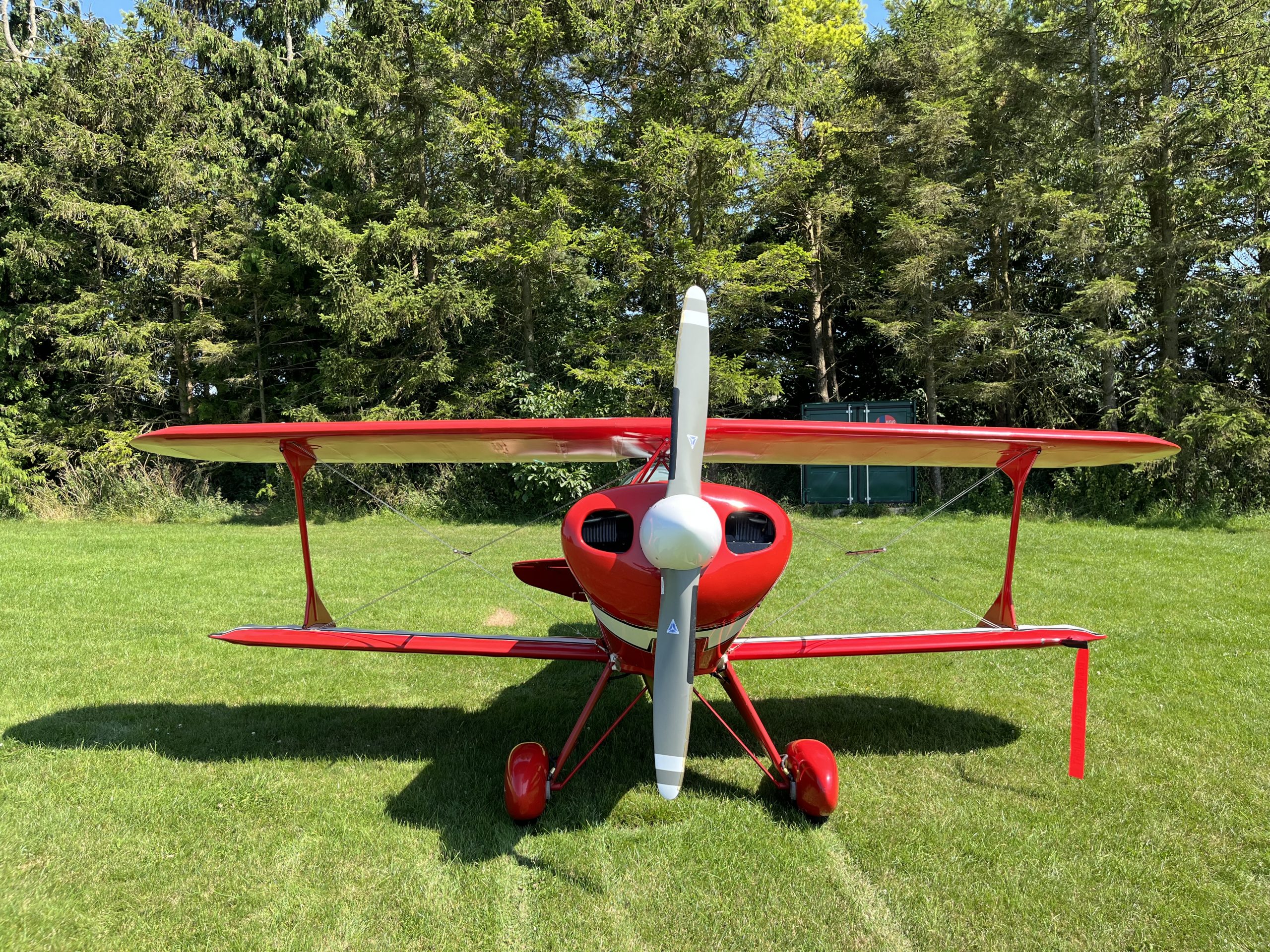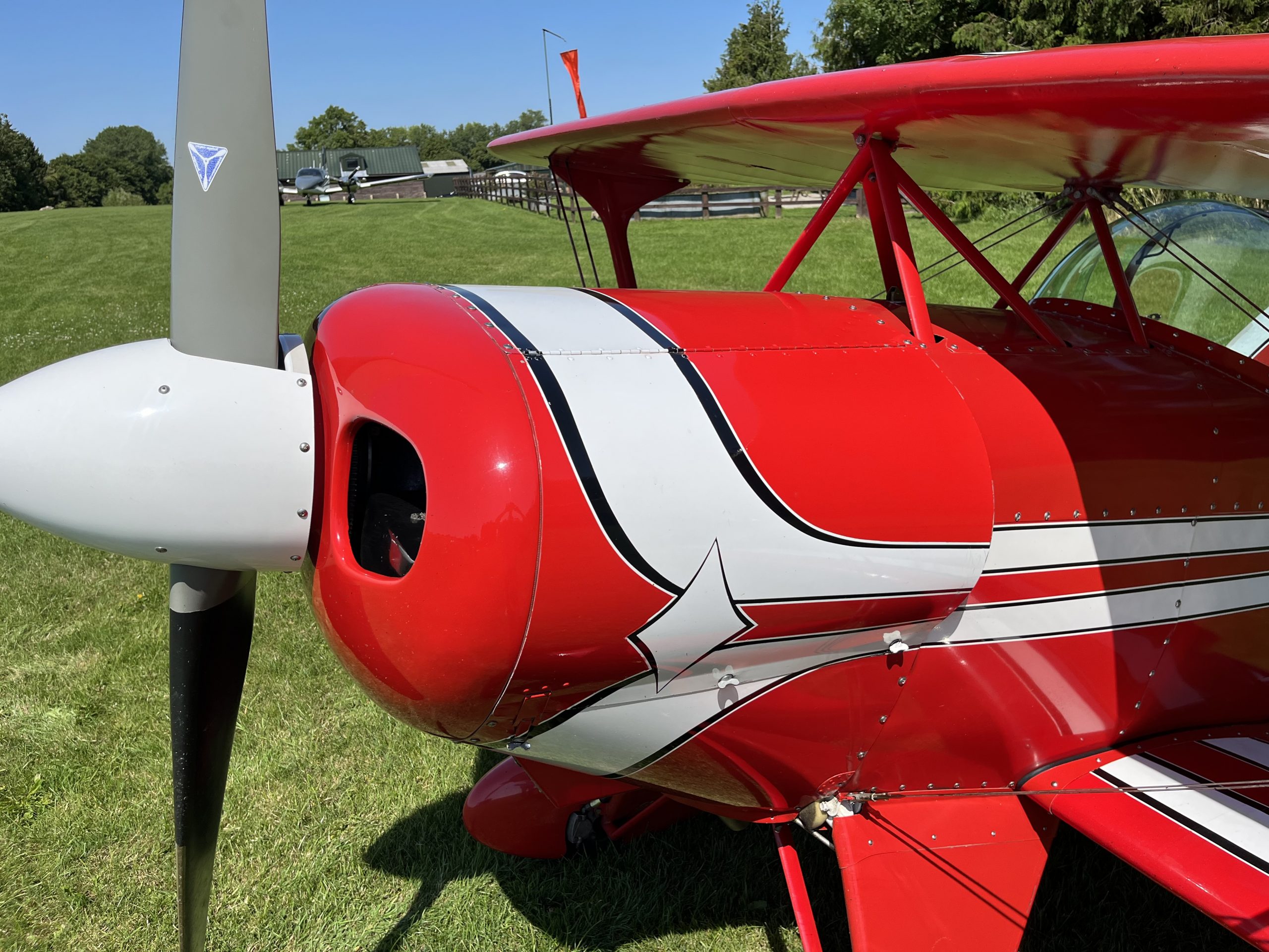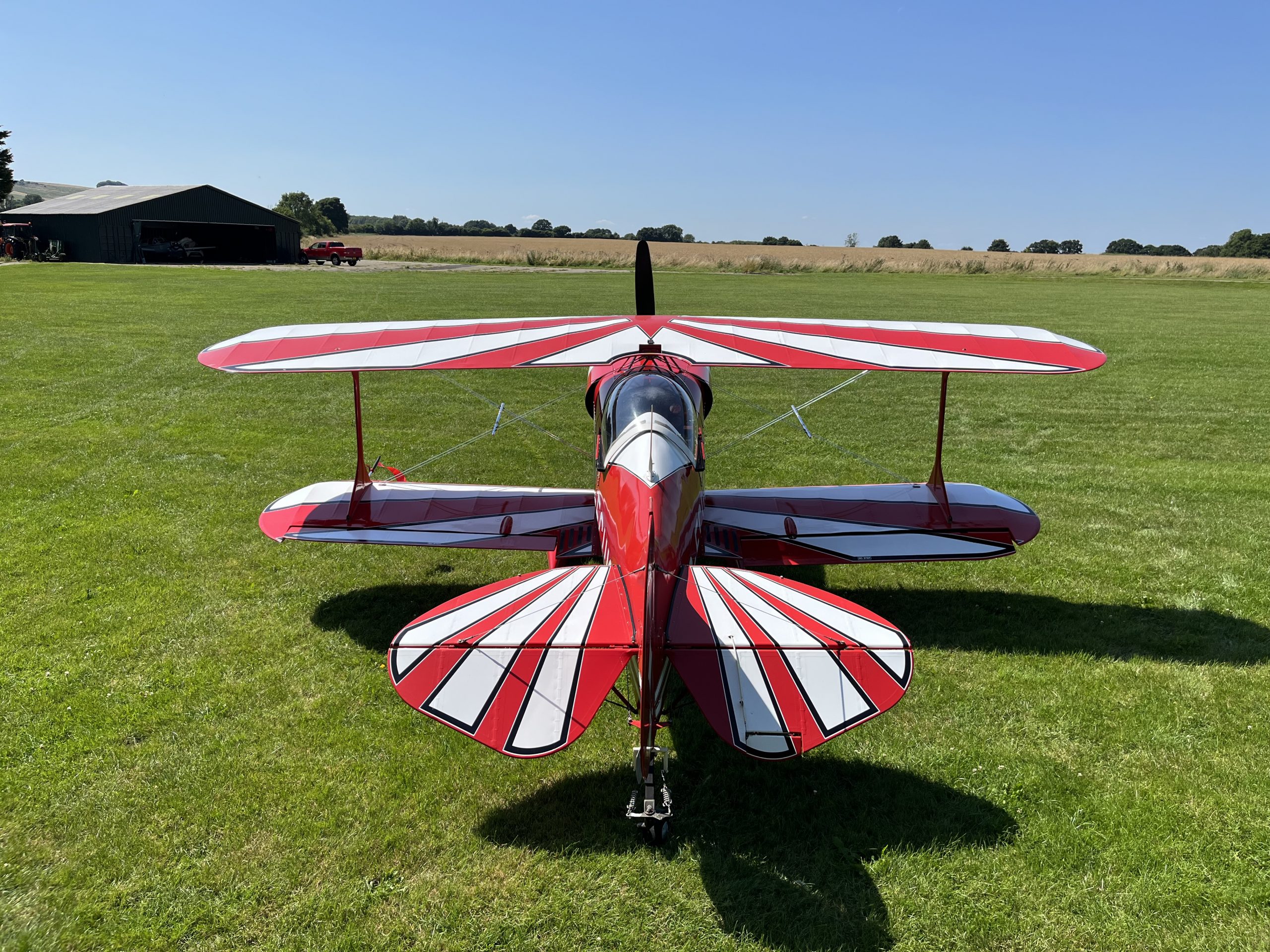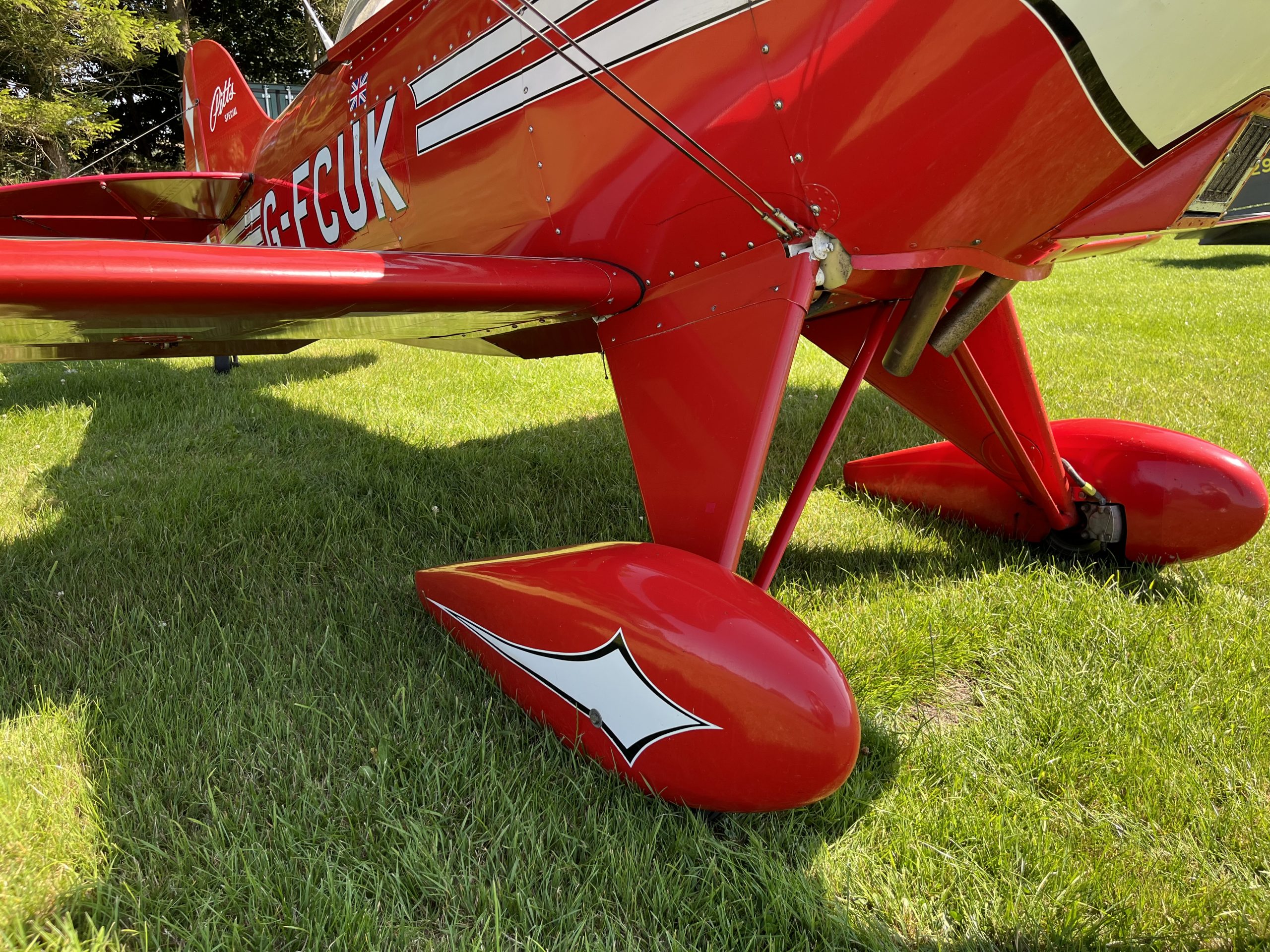 G-FCUK is a classic aerobatic biplane originally built in 1974. It’s a famous design by Curtis Pitts, known for its incredible performance.