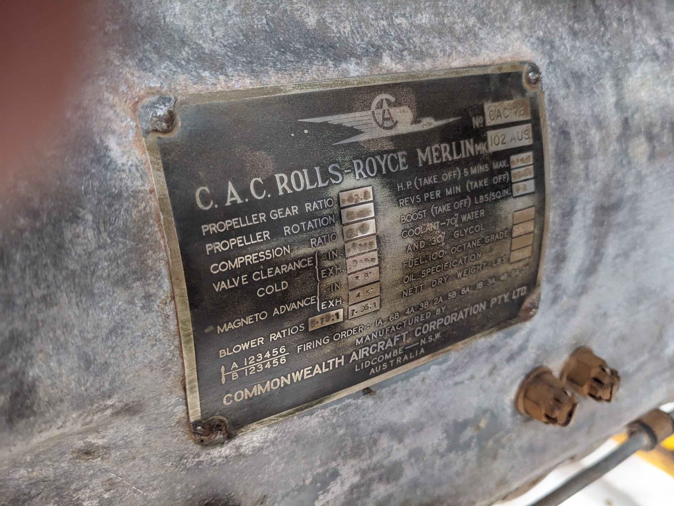 ROLLS ROYCE MERLIN ENGINE 102 series built by CAC in Australia